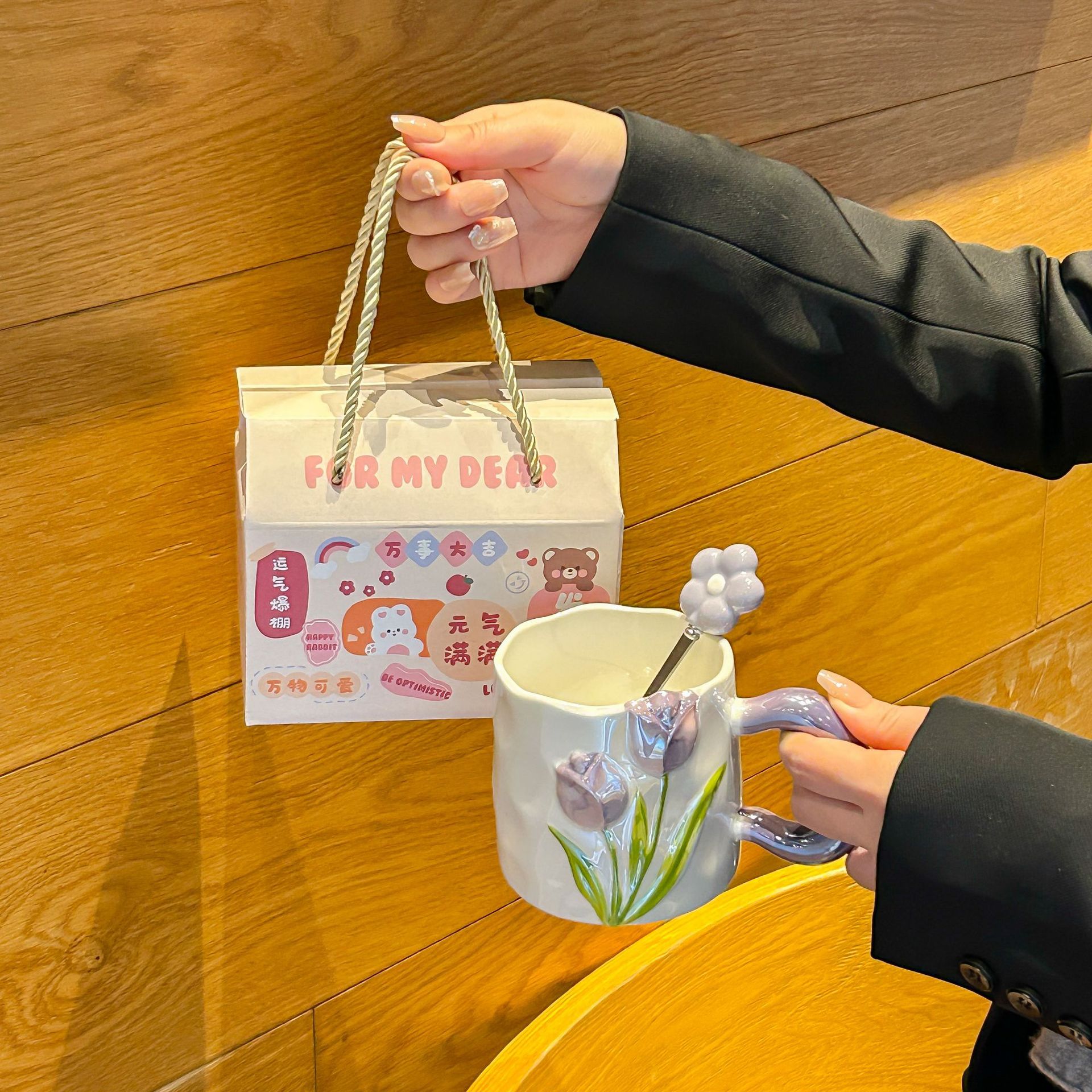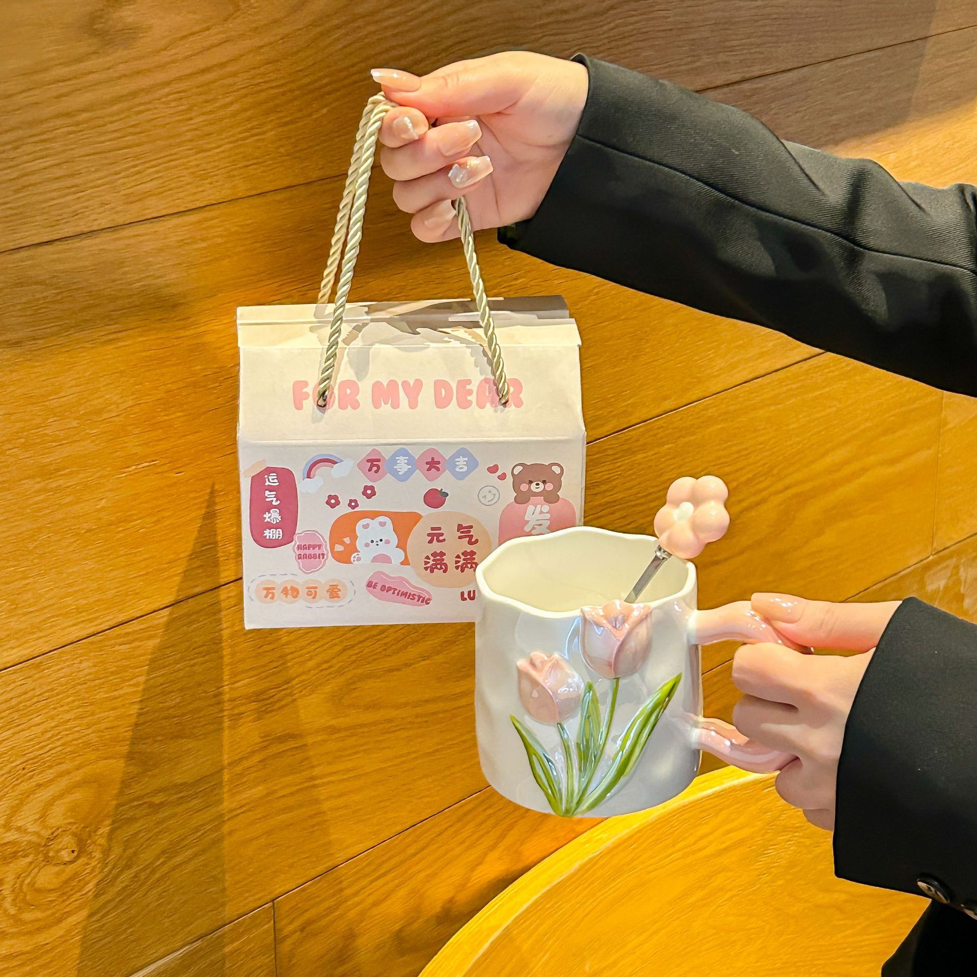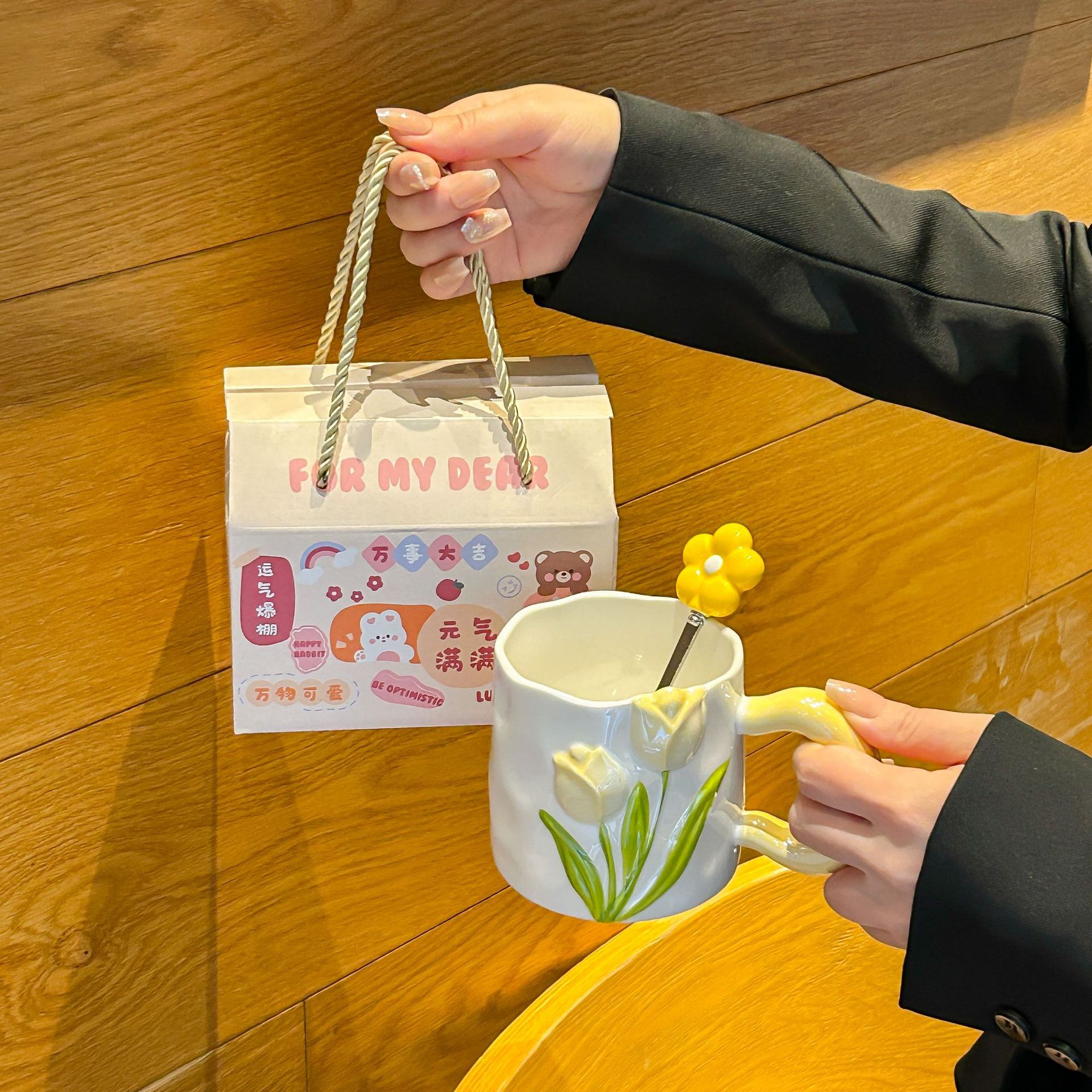 여자아이 생일 선물 컵, 튤립 향기 컵, 신부 들러리 선물, 어머니날 머그컵스토어 가기