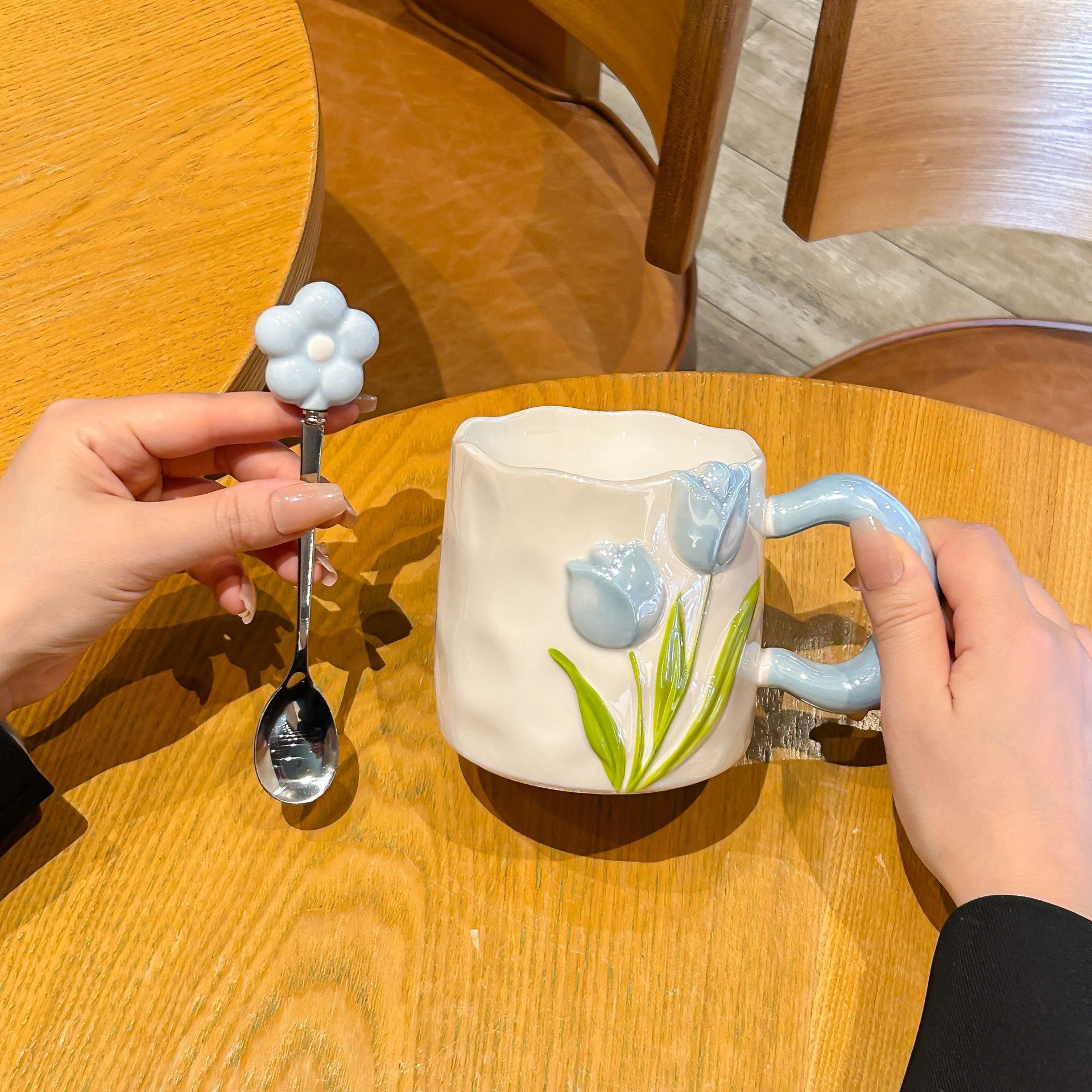 • 푸른 진주빛 튤립 + 귀여운 휴대용 선물 상자 + 전용 스푼