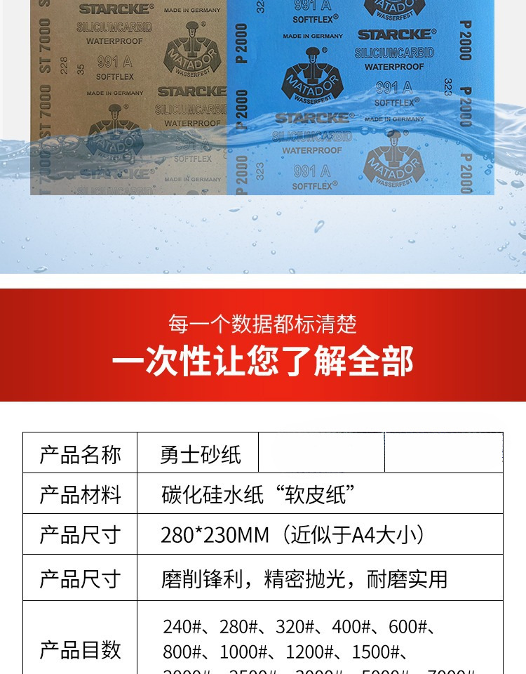 독일 수입 워리어 사포 연마 및 연마 초미세 물 사포 2000 2500 3000 7000 메쉬 사포