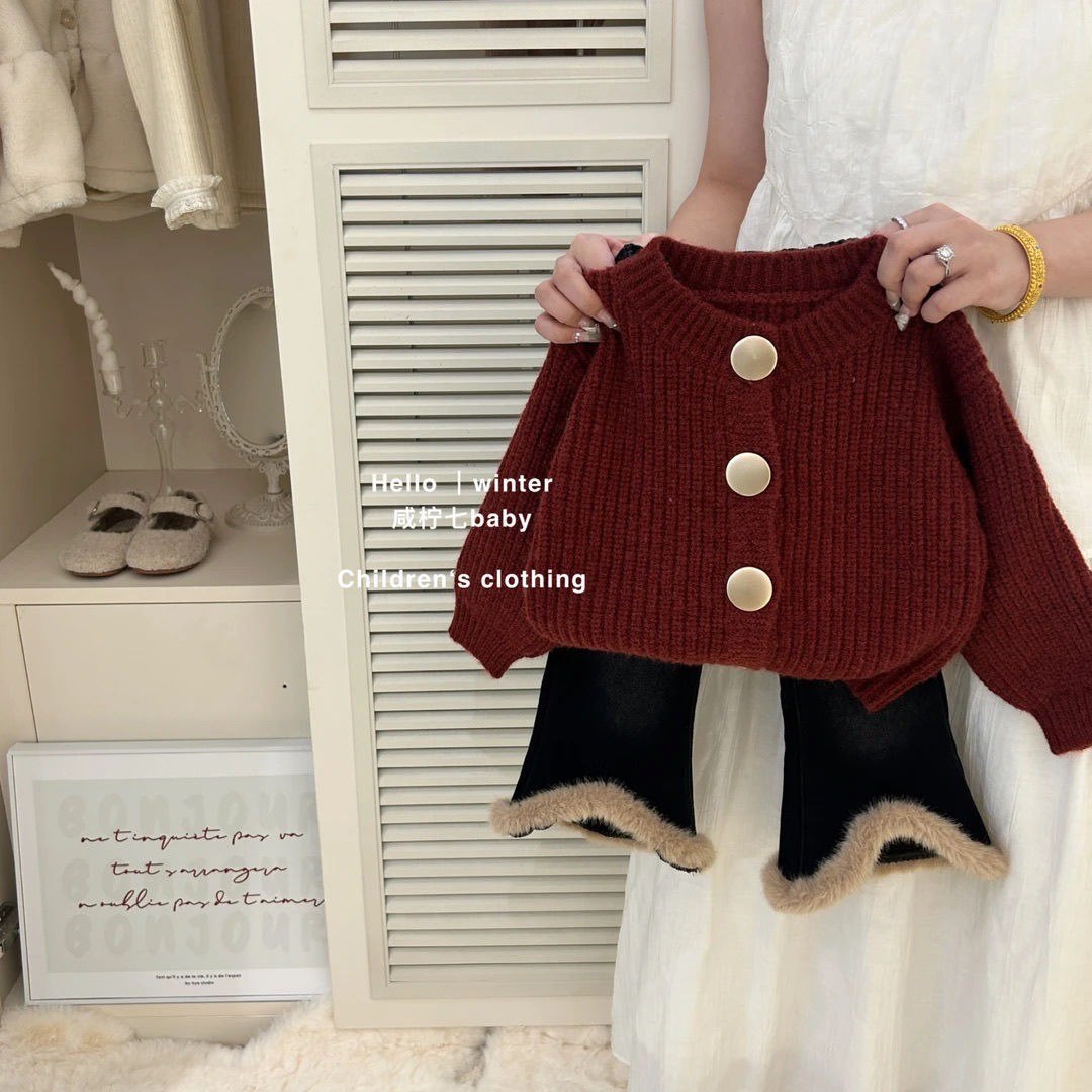 여아 가을 겨울 스웨터 정장, 세련된 2024 새로운 유행 아동용 스웨터 재킷, 여아용 벨벳 바지스토어 가기
