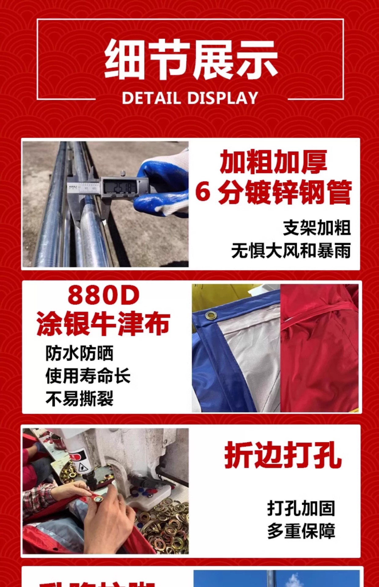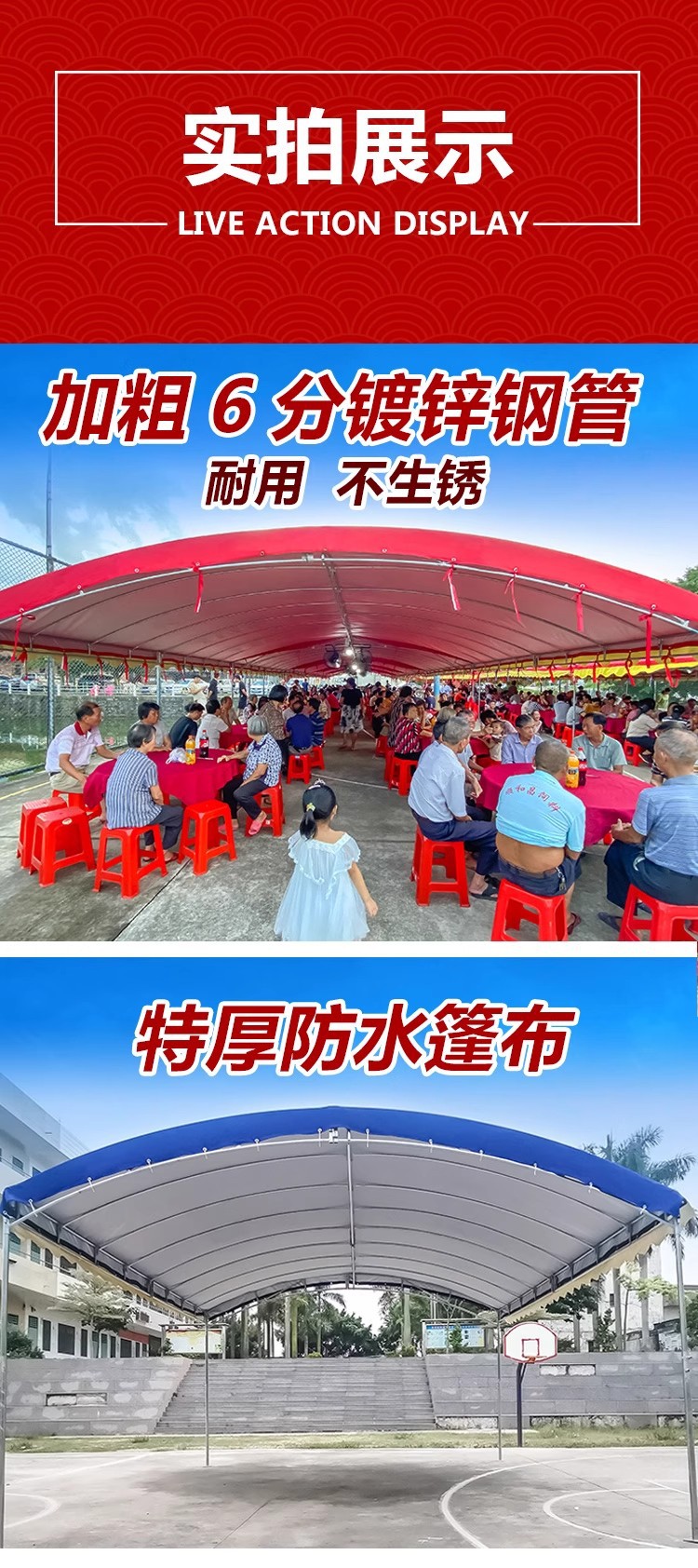 • 두꺼운 6피스 파이프 프레임: 폭 5.8m x 길이 12m