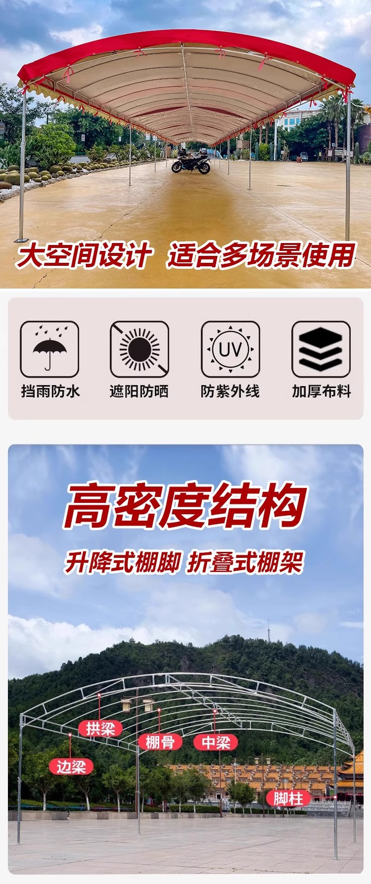 • 두꺼운 6피스 파이프 프레임: 폭 5.8m x 길이 8m