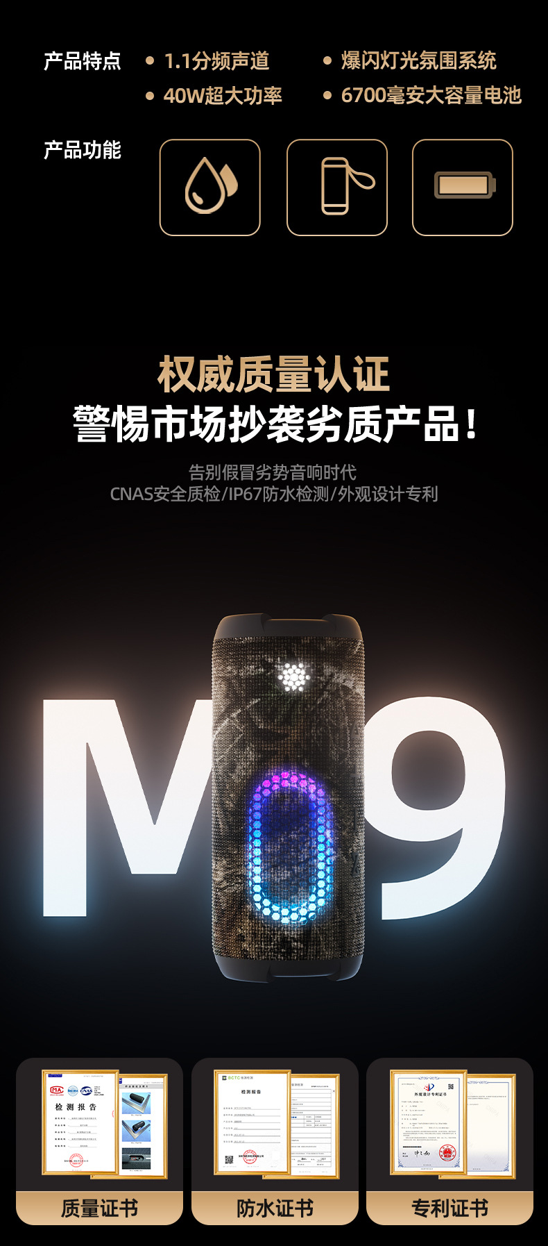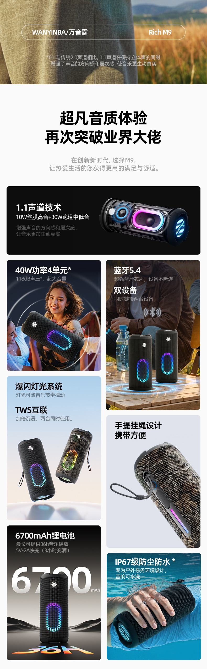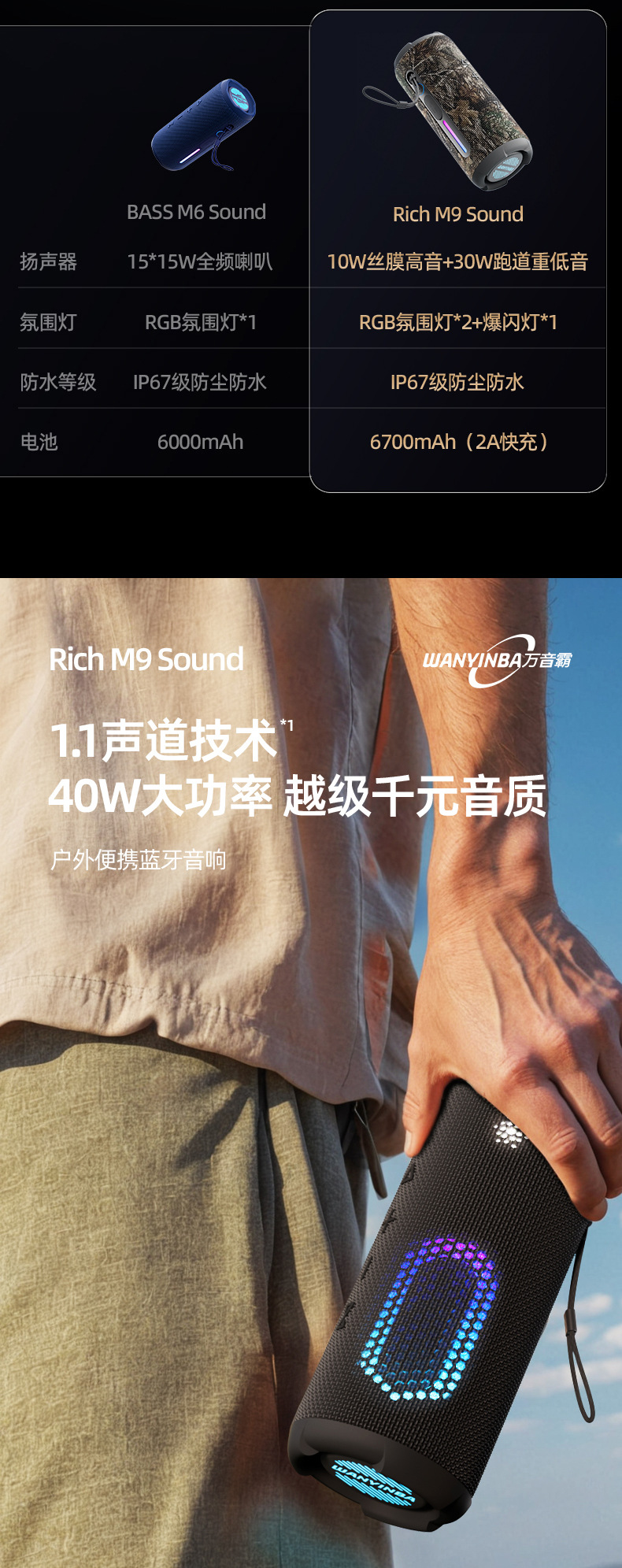 Wanyin Ba M9 플래그십 1.1 채널 블루투스 스피커 야외 방수 휴대용 자동차 오버 웨이트 서브 우퍼 오디오스토어 가기