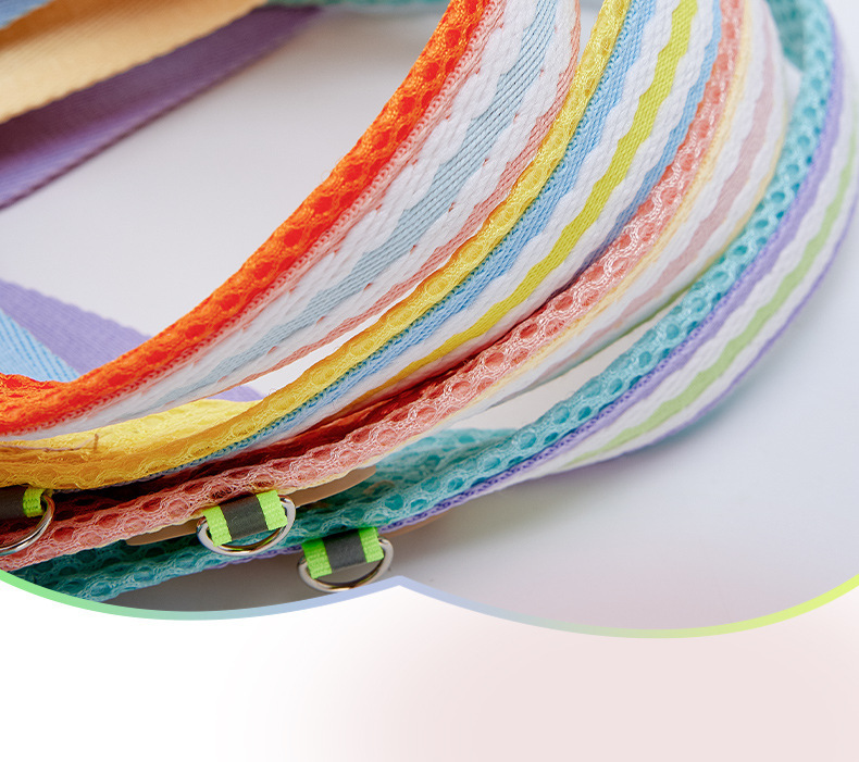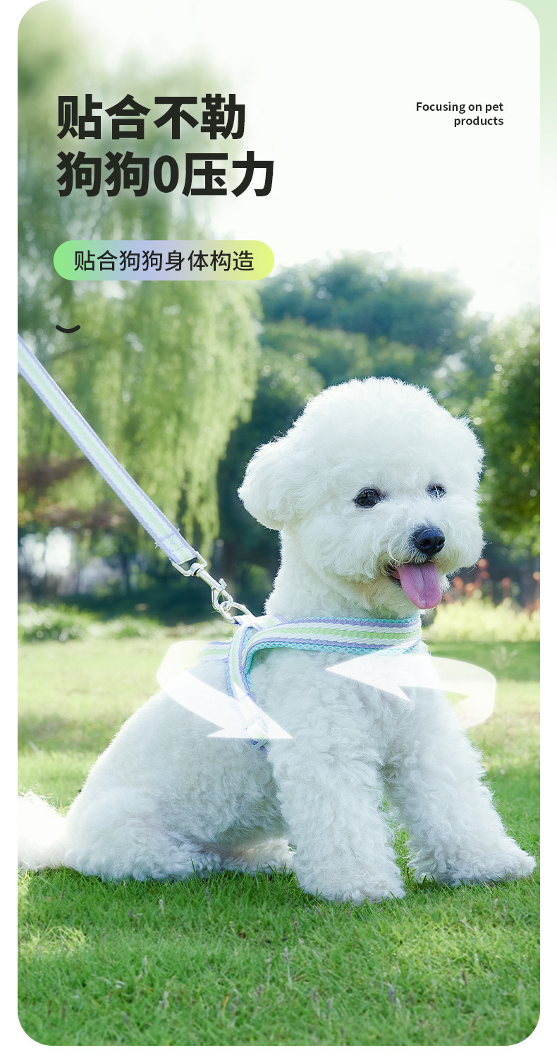 국경 간 도파민 대비 색상 개 하네스 애완 동물 가죽 끈 경량 통기성 조끼 스타일 작은 개 산책용 가죽 끈