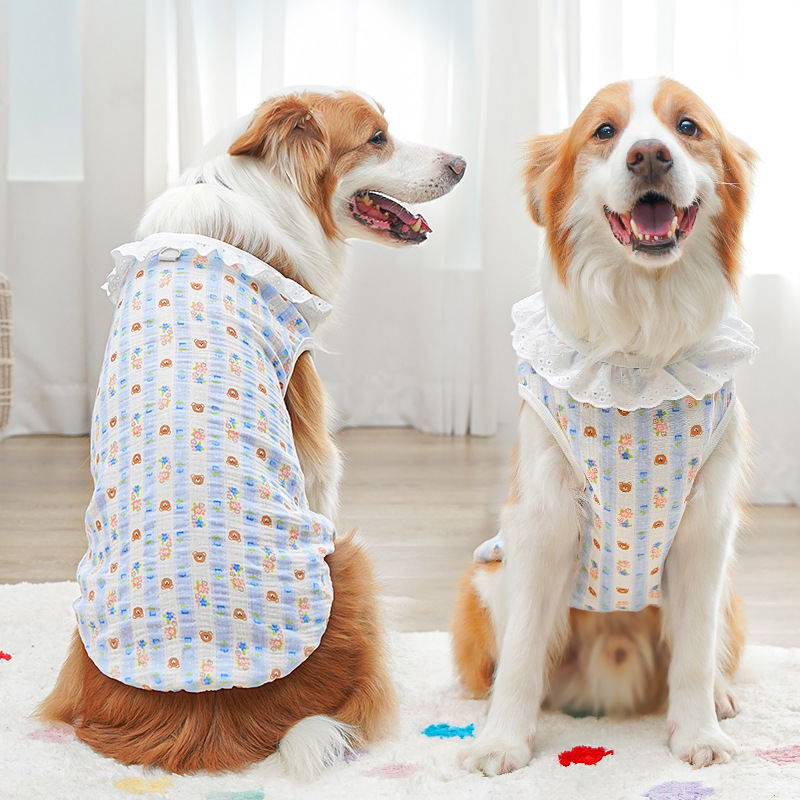 애완 동물 면사 통기성 얇은 큰 개 고양이 애완 동물 고양이 옷 개 용품 홈 에어컨 의류 골든 리트리버