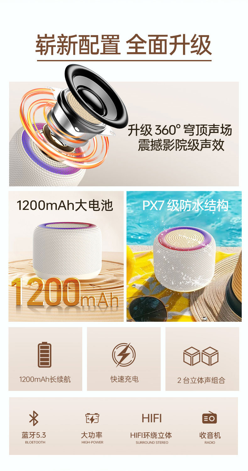 새로운 블루투스 스피커 야외 사이클링 휴대용 미니 카드 스피커 홈 분위기 조명 데스크탑 무선 스피커