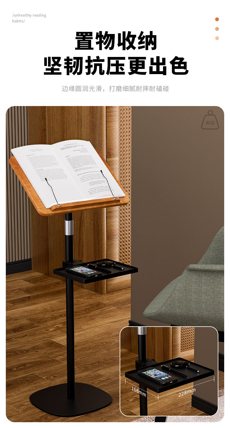 • 50-1.4M 플로어 스탠딩 독서대 + 수납 트레이