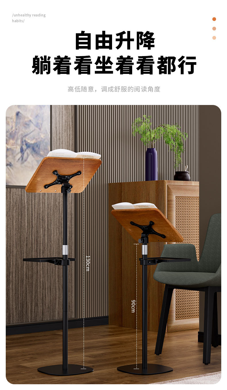 • 50-1.8M 플로어 스탠딩 독서대 + 보관 트레이