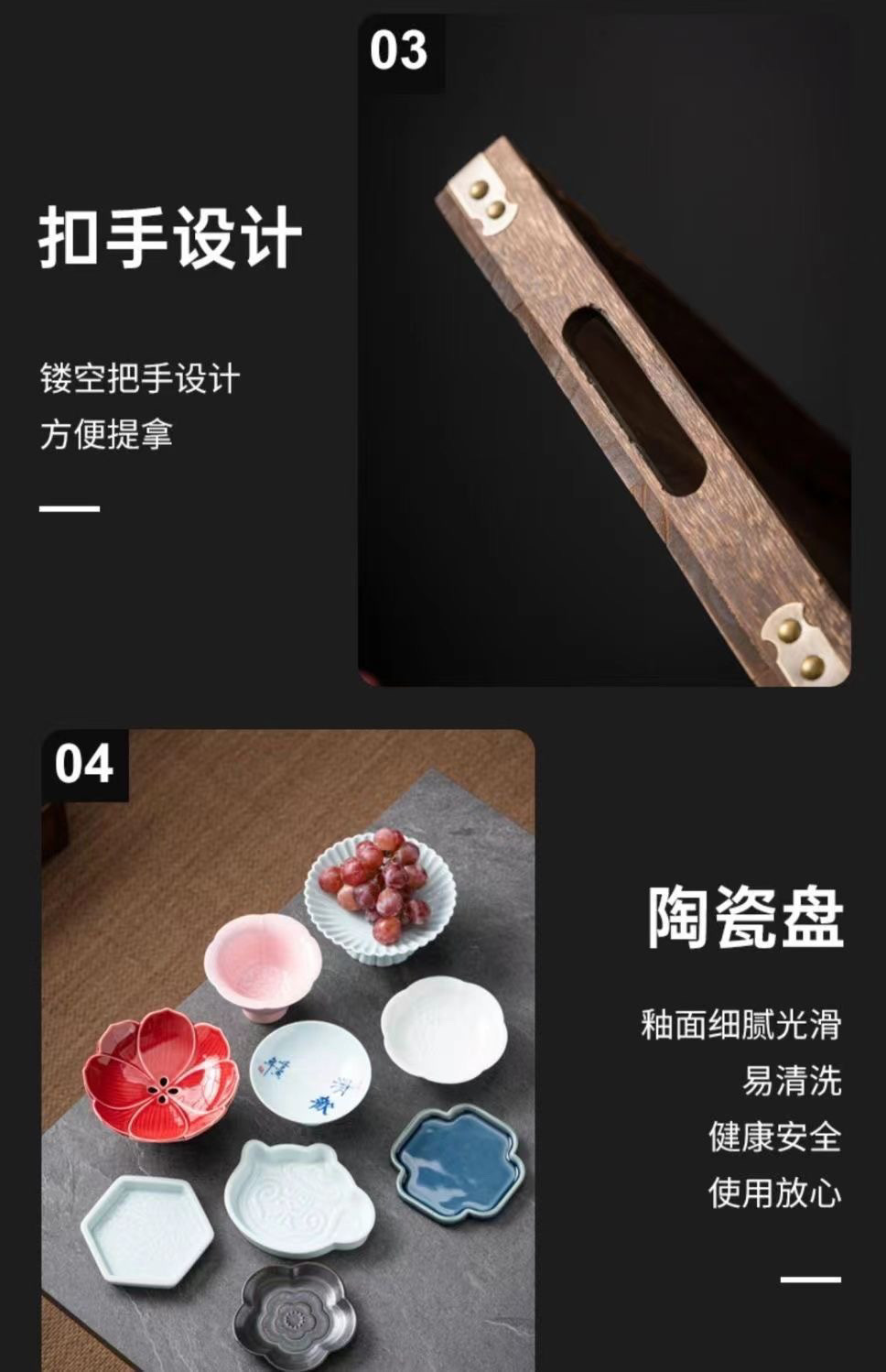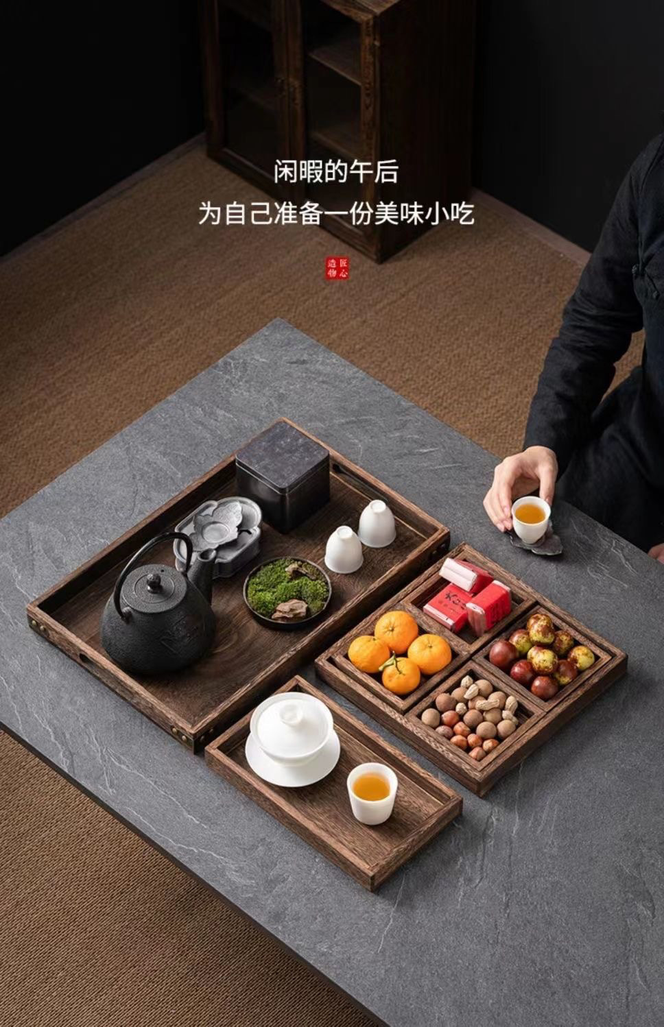 호두 가정용 직사각형 찻잔 트레이 일본식 단단한 나무 차 트레이 커피 트레이 하이 엔드 나무 디너 트레이 새로운스토어 가기