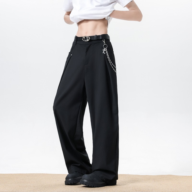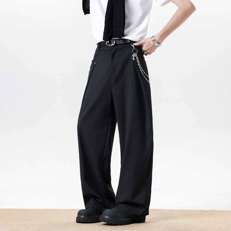 봄과 가을 남성용 그레이 클린핏 디자인 팬츠 루즈한 정장 팬츠 스트레이트 와이드 레그 드레이프 캐주얼 팬츠스토어 가기