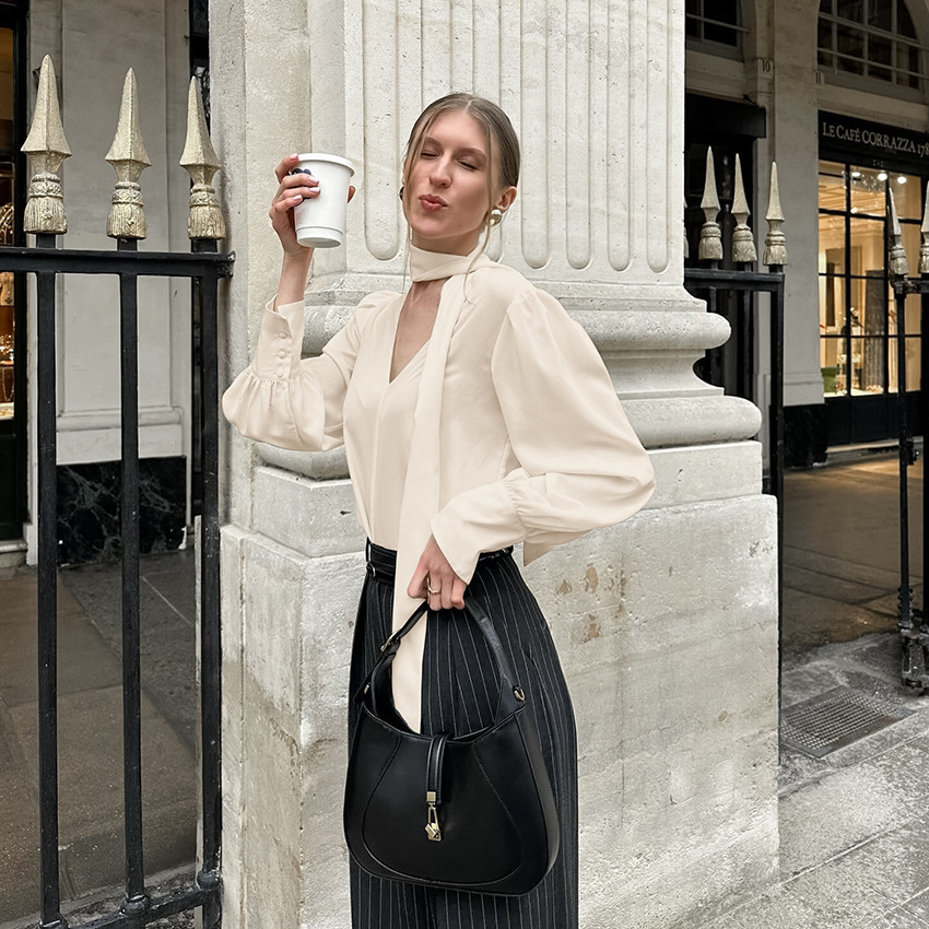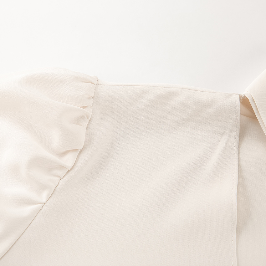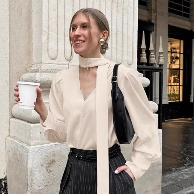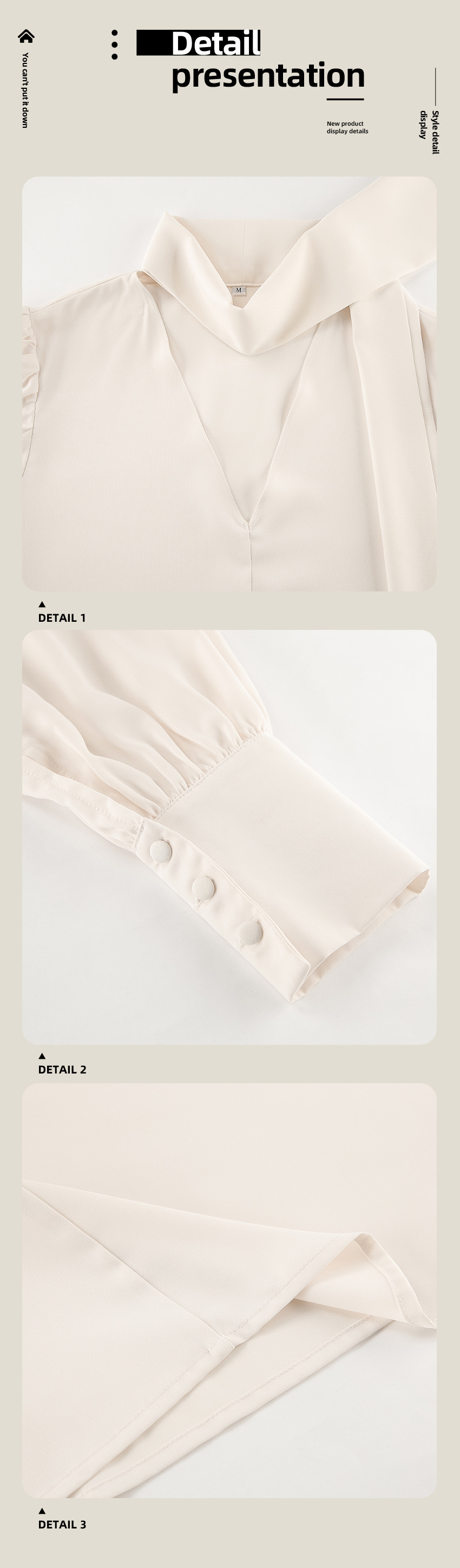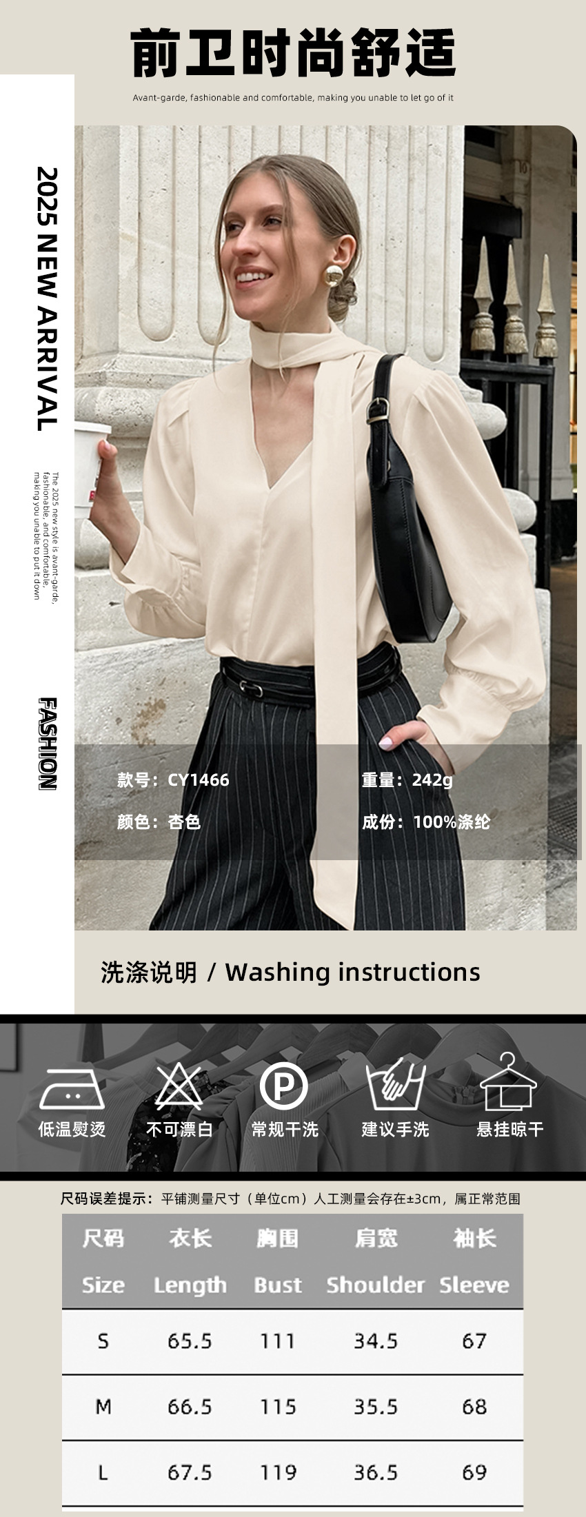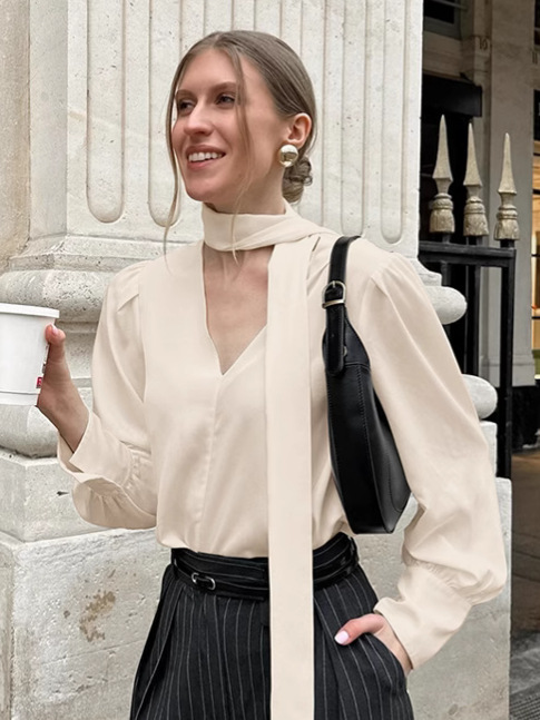 프랑스 통근 레이스 업 V 넥 쉬폰 셔츠 여자 2025 여름 하이 엔드 센스 살구색 긴팔 여성용 셔츠 여성용 의류스토어 가기