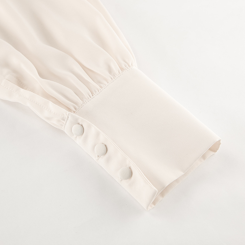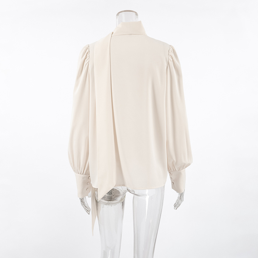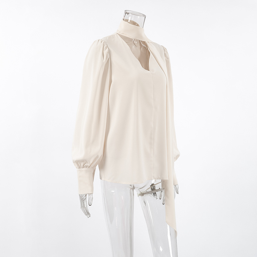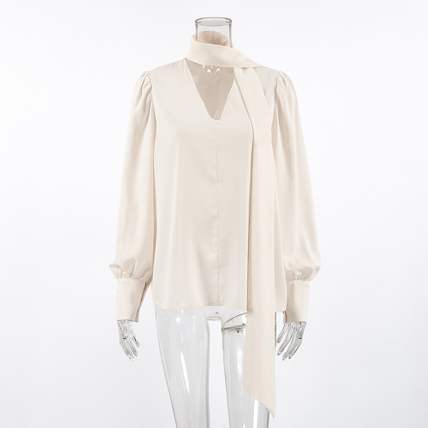 프랑스 통근 레이스 업 V 넥 쉬폰 셔츠 여자 2025 여름 하이 엔드 센스 살구색 긴팔 여성용 셔츠 여성용 의류