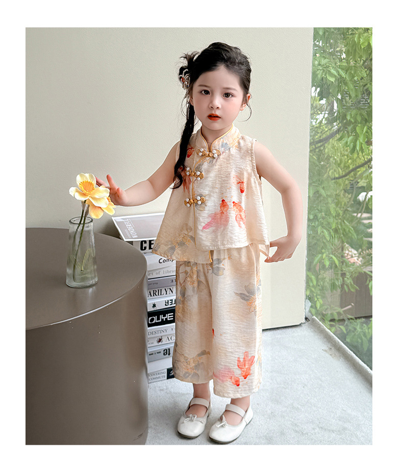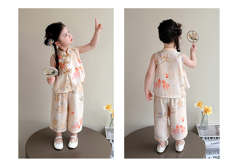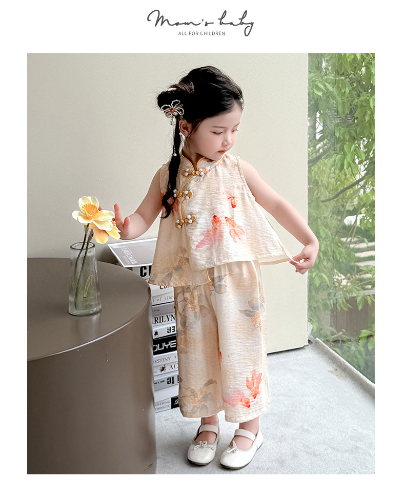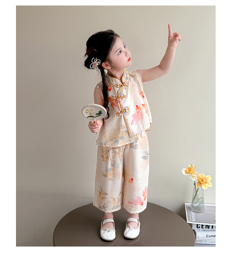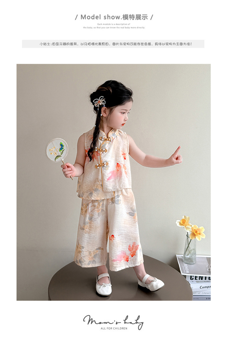 소녀 세트 여름 국가 스타일 민소매 새로운 서양 스타일 2025 어린이 새로운 중국 한후 아기 복고풍 투피스 세트스토어 가기