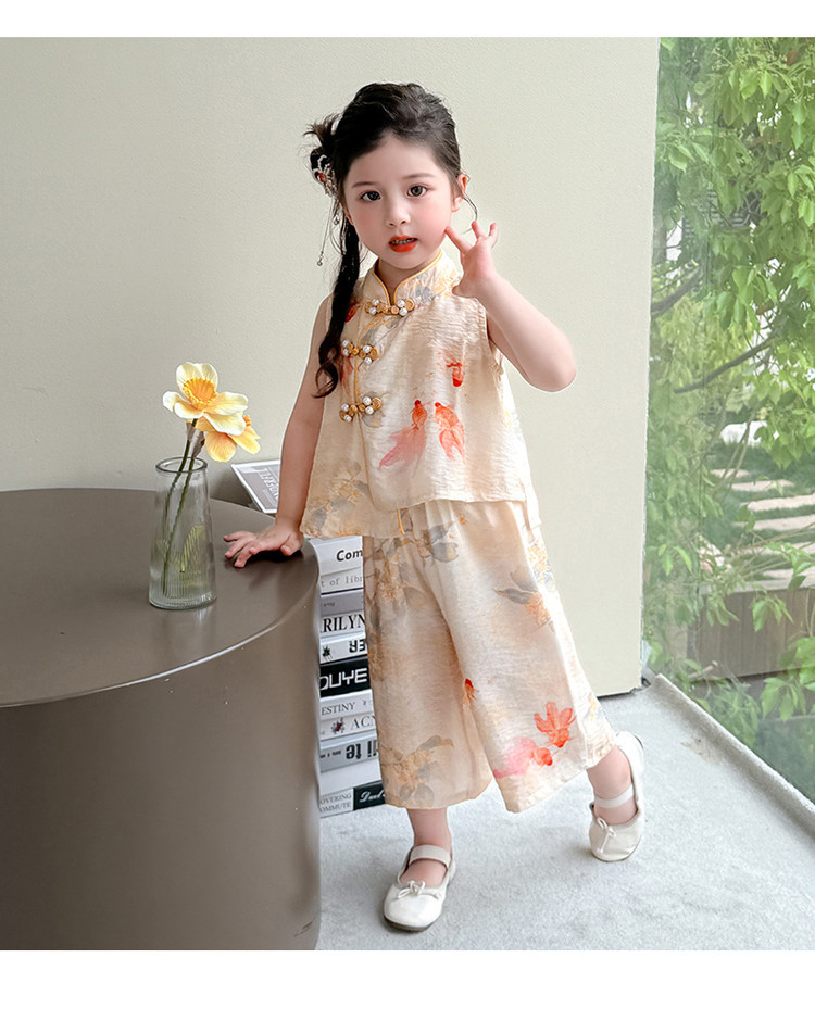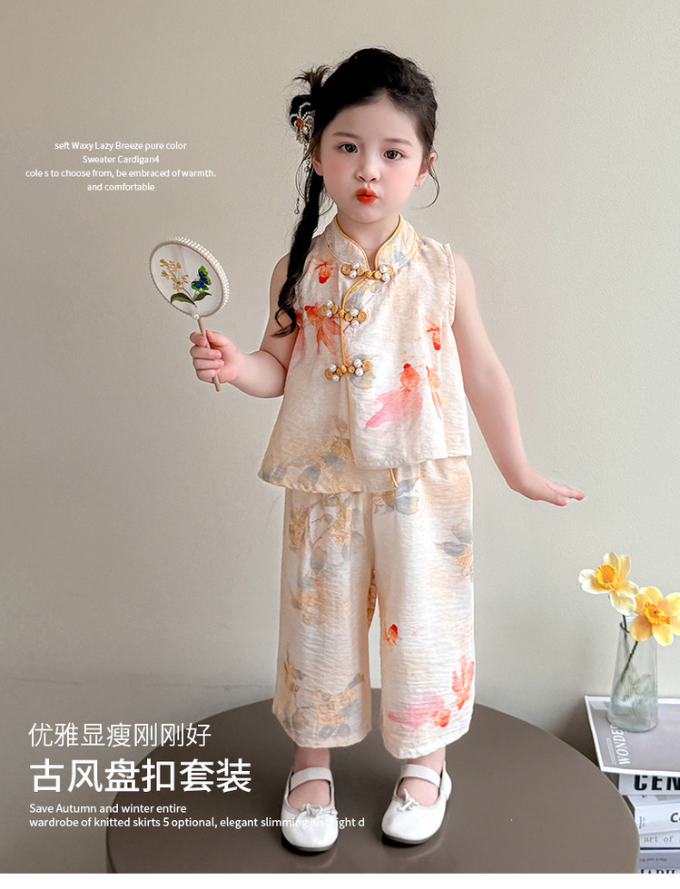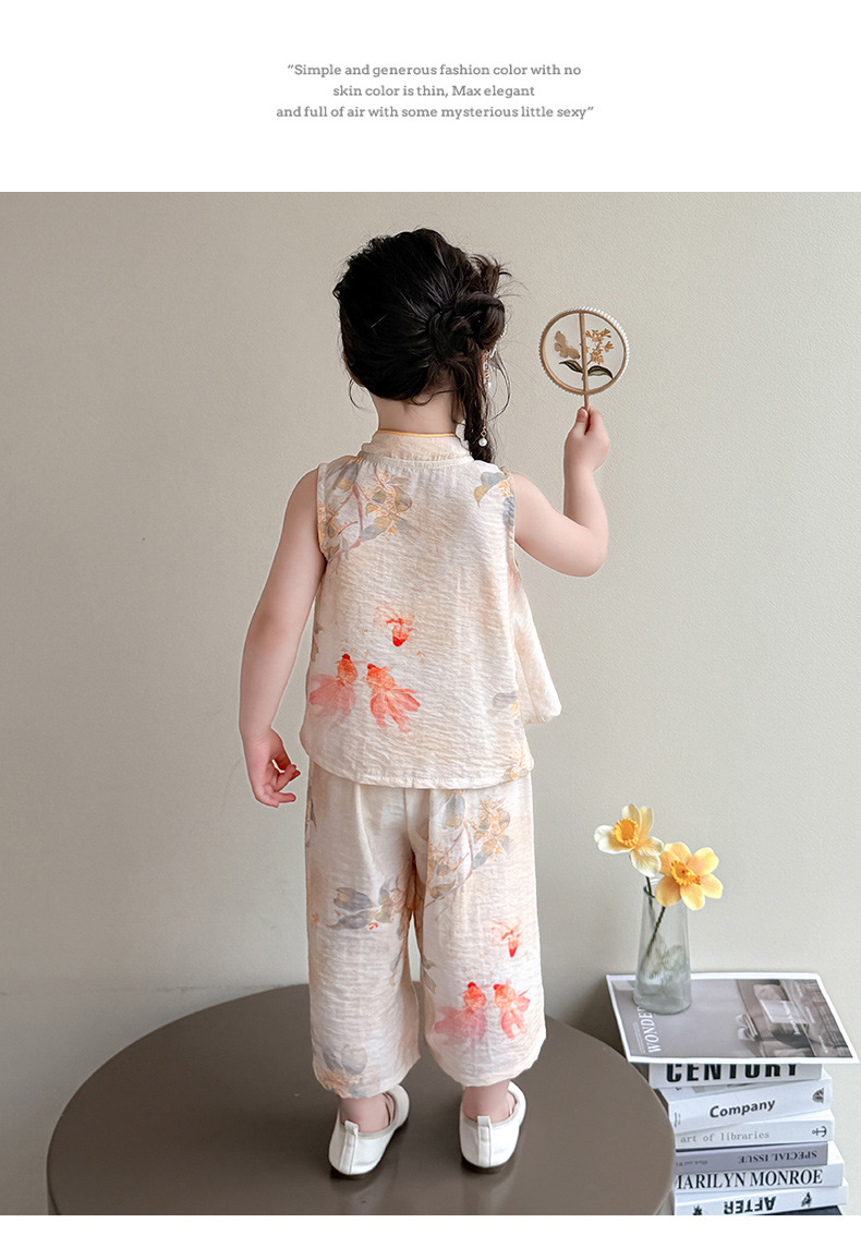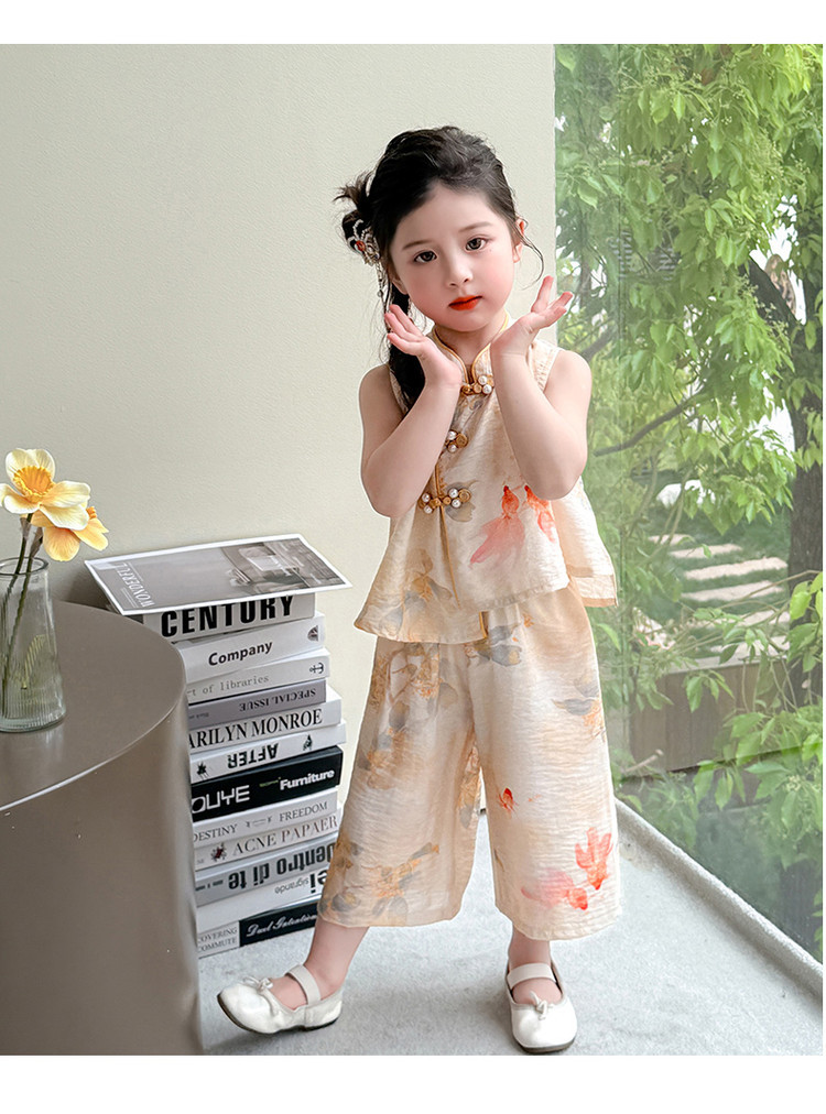 소녀 세트 여름 국가 스타일 민소매 새로운 서양 스타일 2025 어린이 새로운 중국 한후 아기 복고풍 투피스 세트스토어 가기