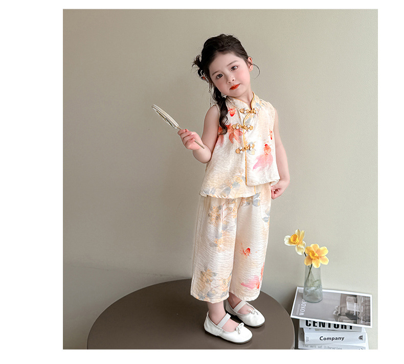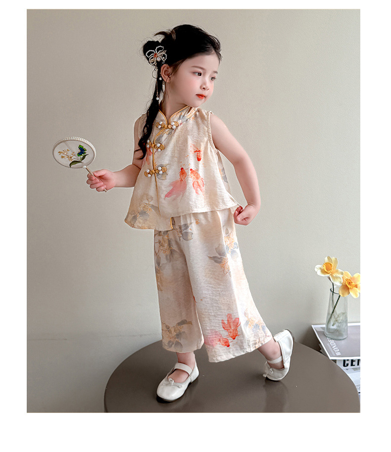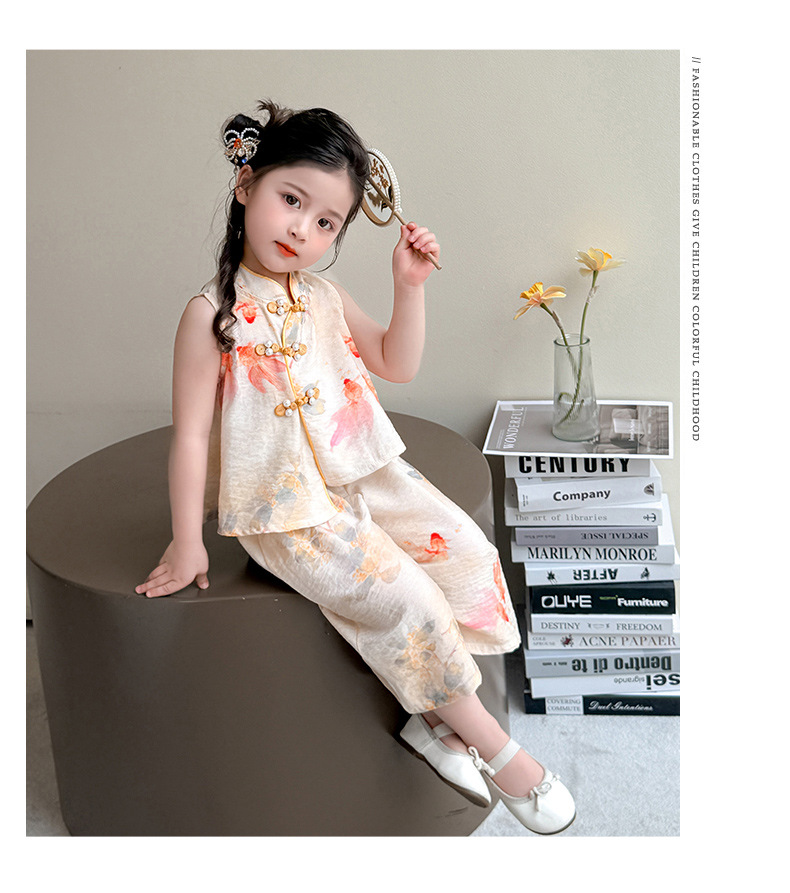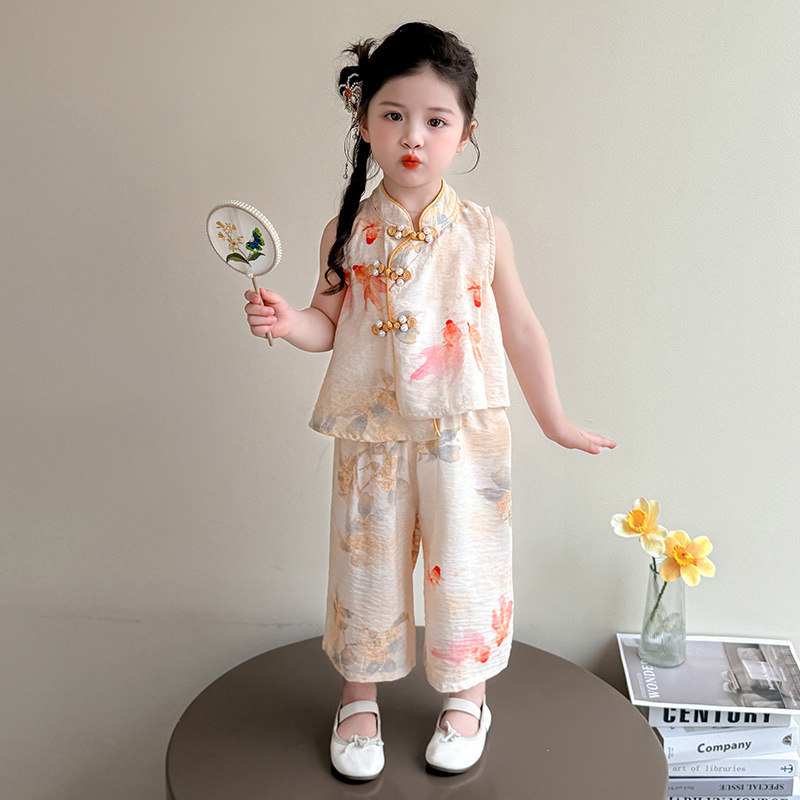 소녀 세트 여름 국가 스타일 민소매 새로운 서양 스타일 2025 어린이 새로운 중국 한후 아기 복고풍 투피스 세트