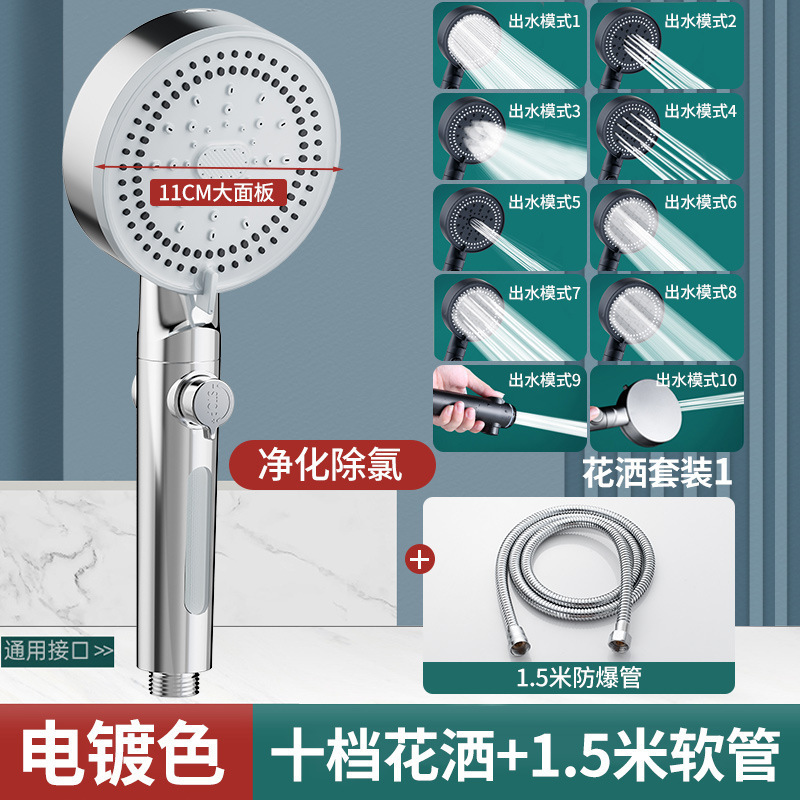 • Jiumu 10단 전기도금 샤워기 + 1.5m개의 암호화 호스 + 브래킷