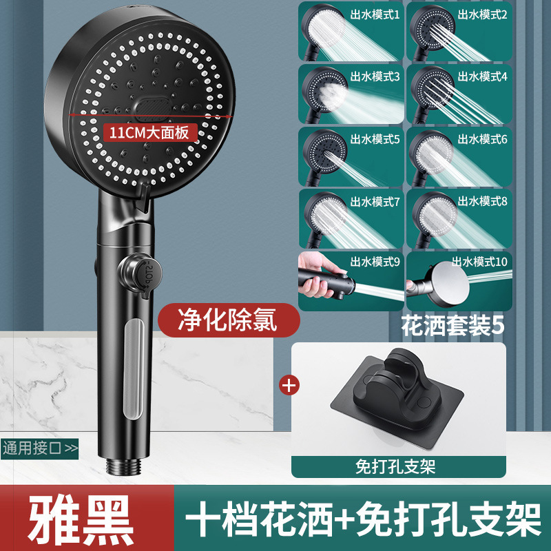 • Jiumu 10단 블랙 샤워헤드 + 브라켓