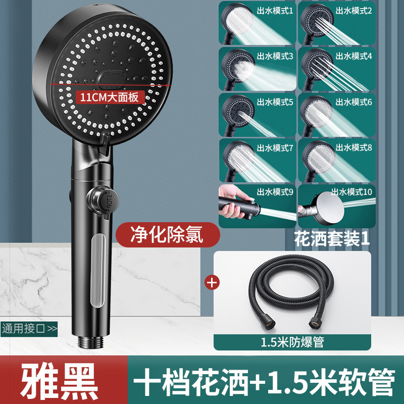 • Jiumu 10단 블랙 샤워기 + 1.5m 암호화 호스