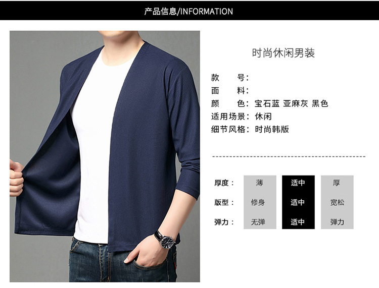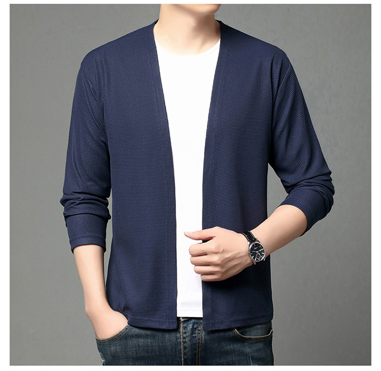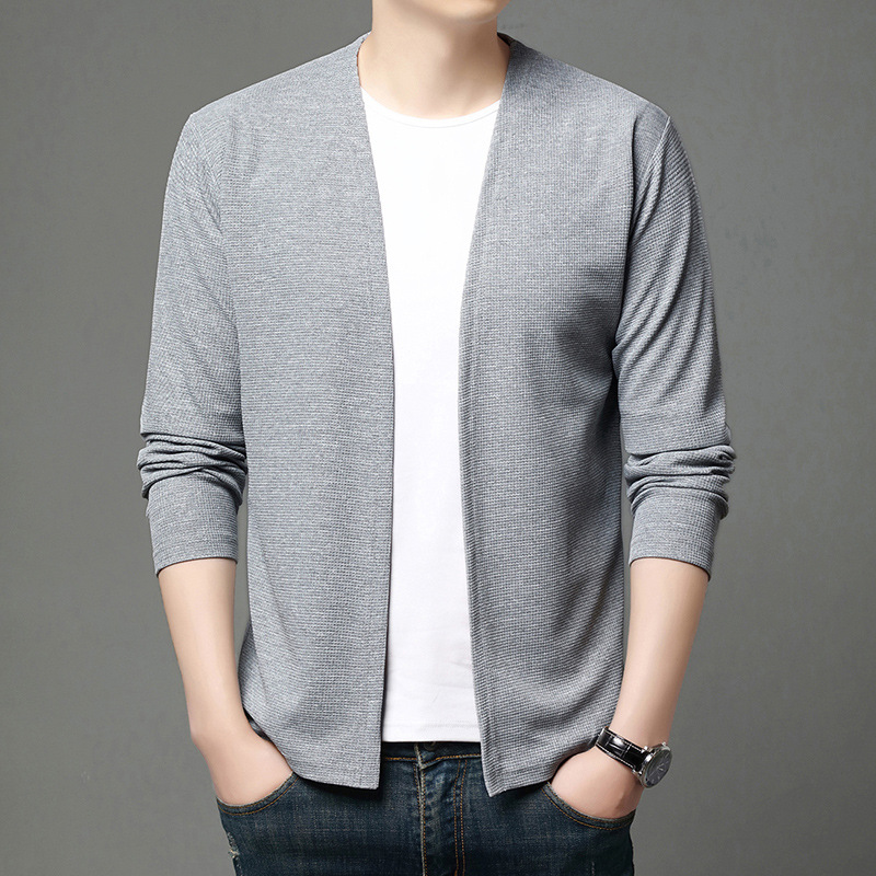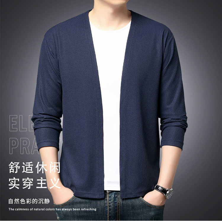 봄 심리스 캐주얼 얇은 가디건, 청년 및 중년층을 위한 가볍고 얇은 우븐 재킷, 다재다능한 통기성 숄, 남성용 에어컨 셔츠스토어 가기