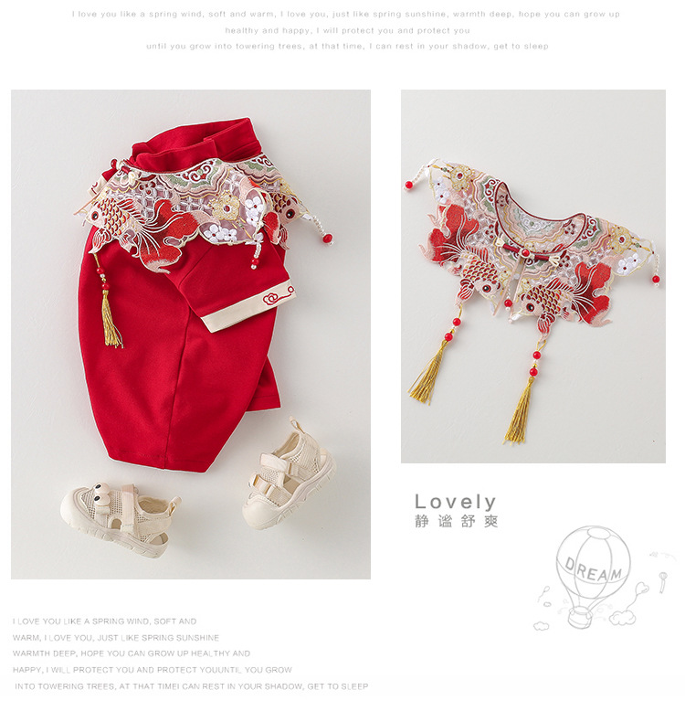 여름 2025 새로운 소년과 소녀 아기 중국 복고풍 아기 결합 금붕어 목도리 축제 아기 점프 수트스토어 가기