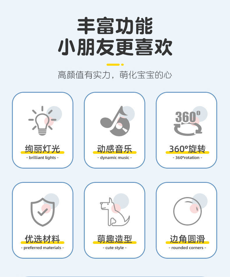 춤추고 회전하는 소년 소녀들을 위한 인터넷 연예인 인기 어린이 전기 개 장난감, 조명, 음악 및 아기를 위한 특수 효과