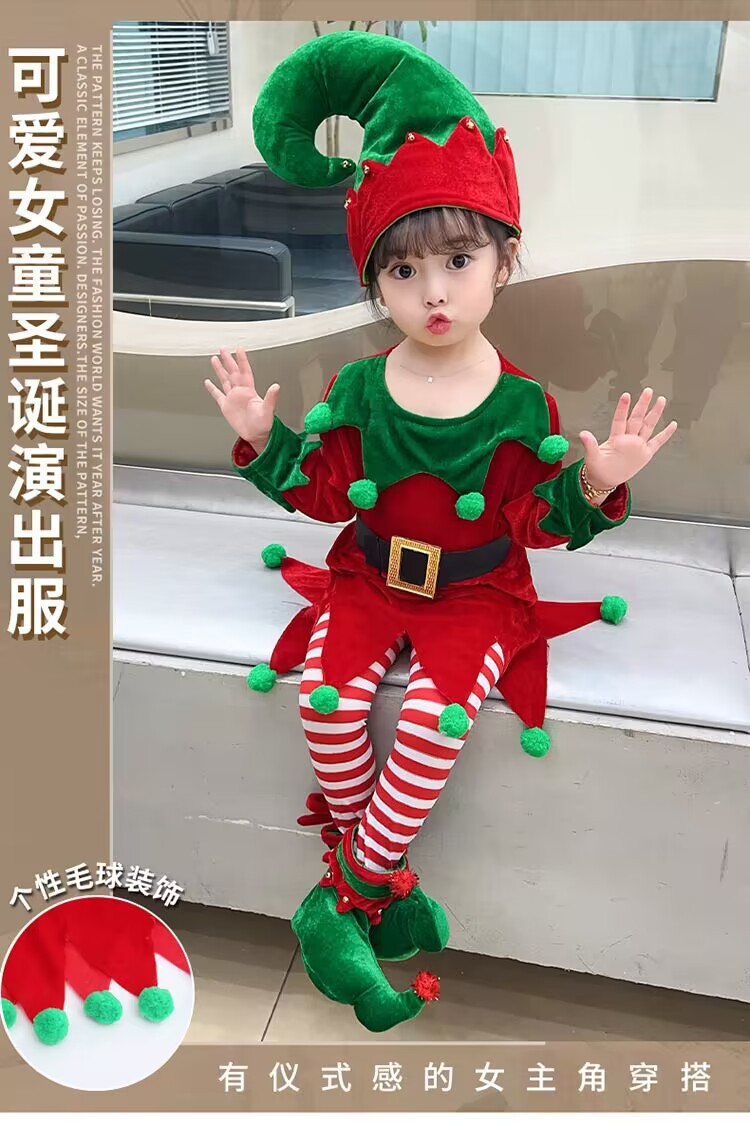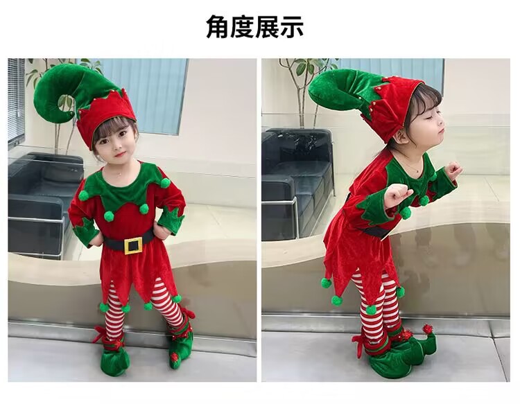 유럽과 미국의 크리스마스 어린이 크리스마스 엘프 의상 코스프레 부모-자식 의상 어린이 크리스마스 의상 후드 드레스스토어 가기