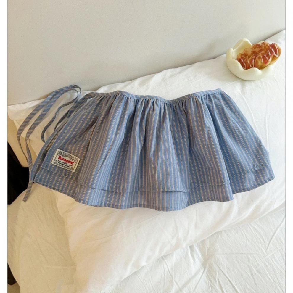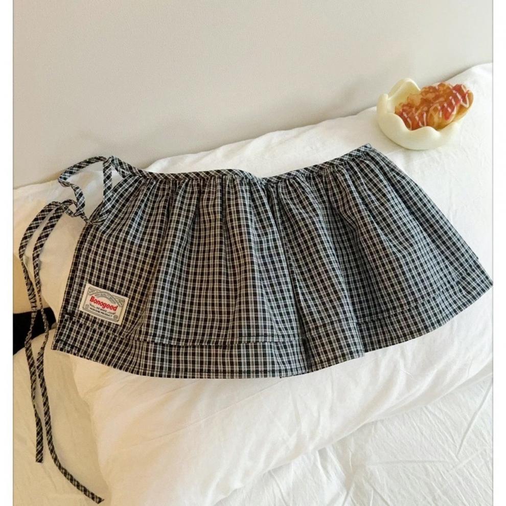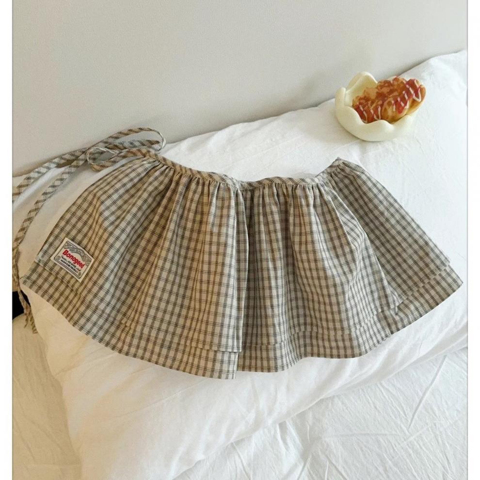 어린이 2025 봄 새로운 스타일 블루 격자 무늬 레이스 업 엉덩이 커튼 소녀 한국 복고풍 다목적 장식 하프 길이