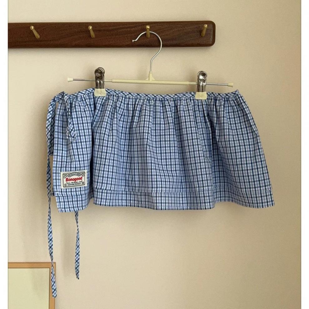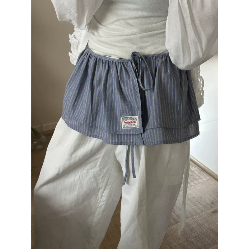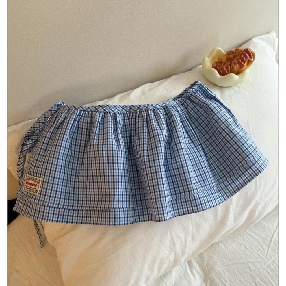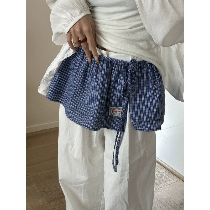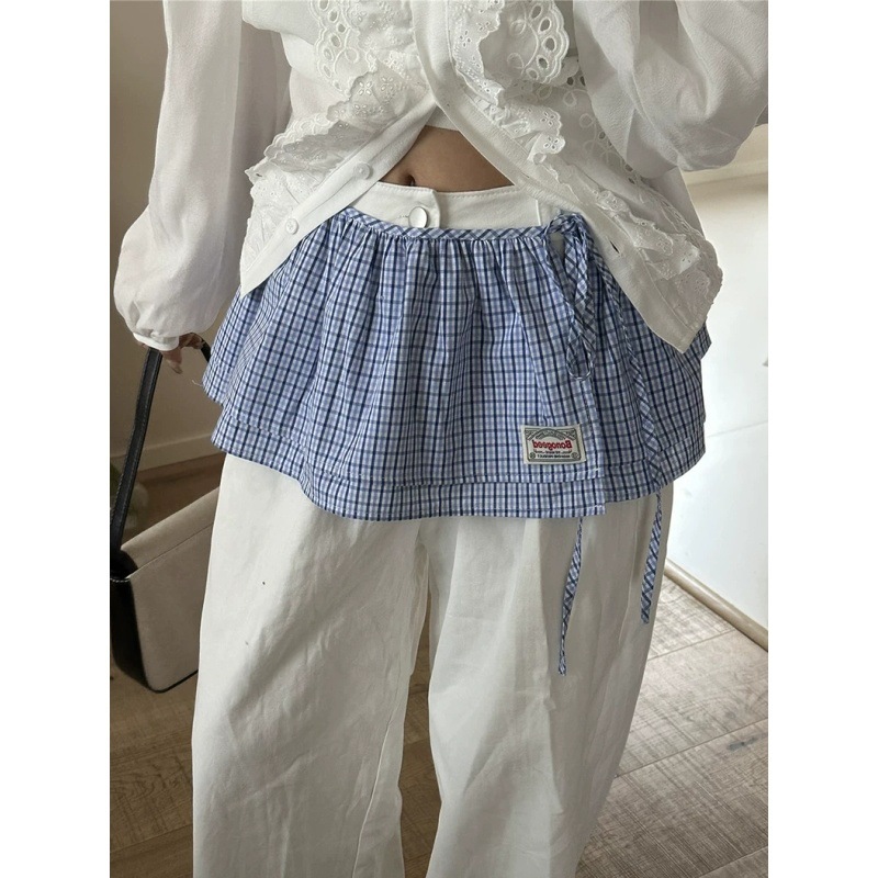 어린이 2025 봄 새로운 스타일 블루 격자 무늬 레이스 업 엉덩이 커튼 소녀 한국 복고풍 다목적 장식 하프 길이스토어 가기