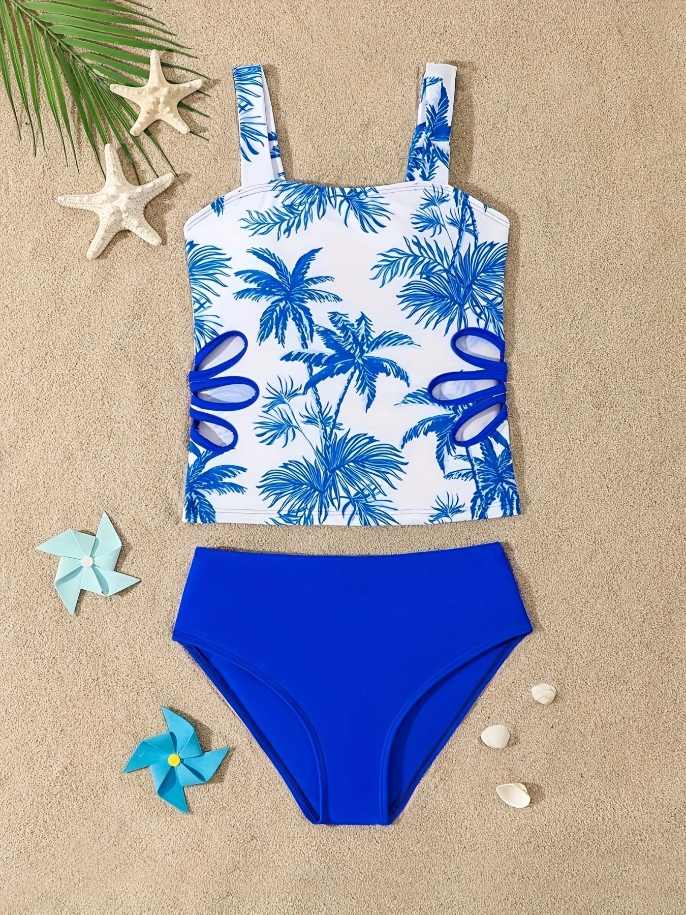크로스보더 2025 신형 아동 수영복, 중대형 여아 스플릿 타키니, 여아 중공 수영복