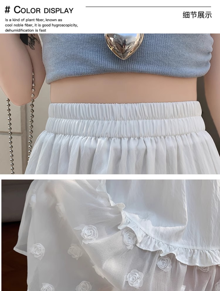 [오리지널 원단] 화이트 쉬폰 스플라이스 우산 스커트 여성 디자인 입체 꽃 A라인 미드길이 스커트스토어 가기