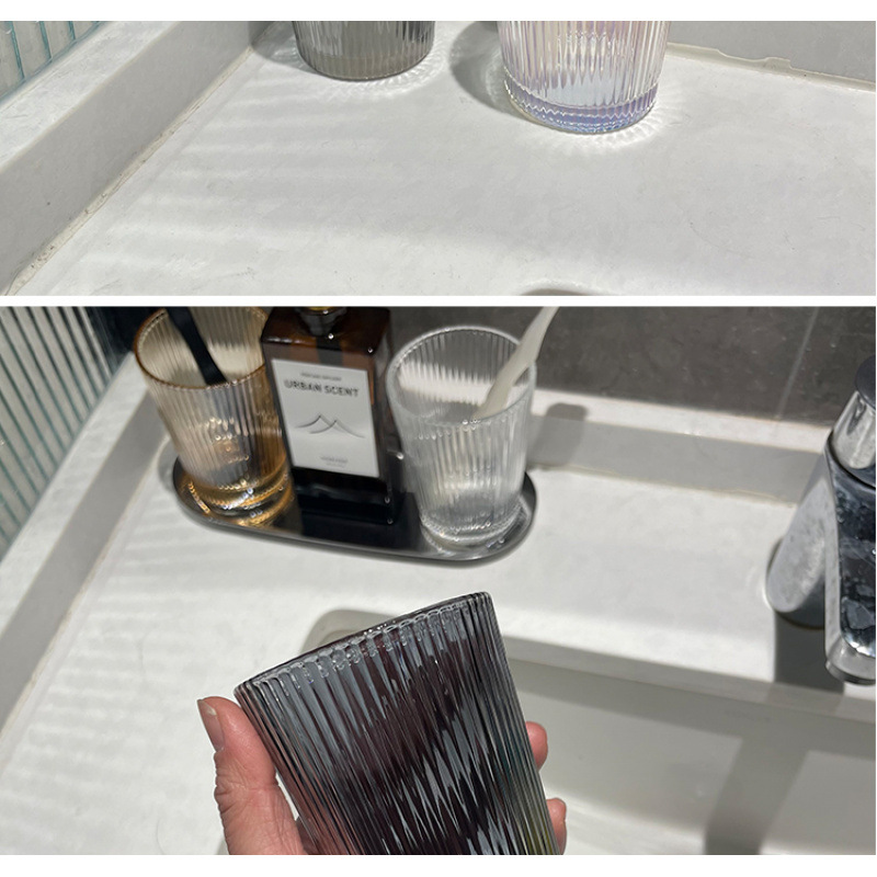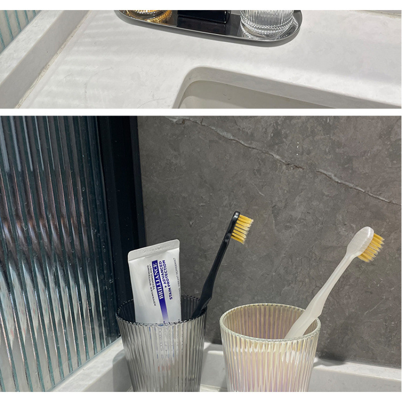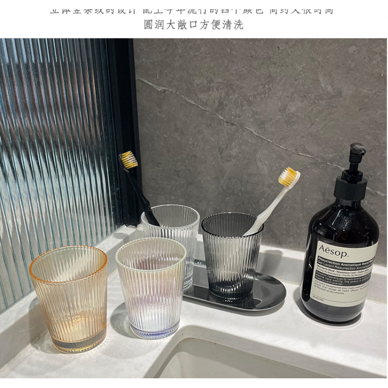 간단한 Ins 일본 스타일 가벼운 럭셔리 이빨 컵 투명 유리 무더워시 컵 빈티지 워터 컵 틈새 커플 워시 왕 샤오 샹