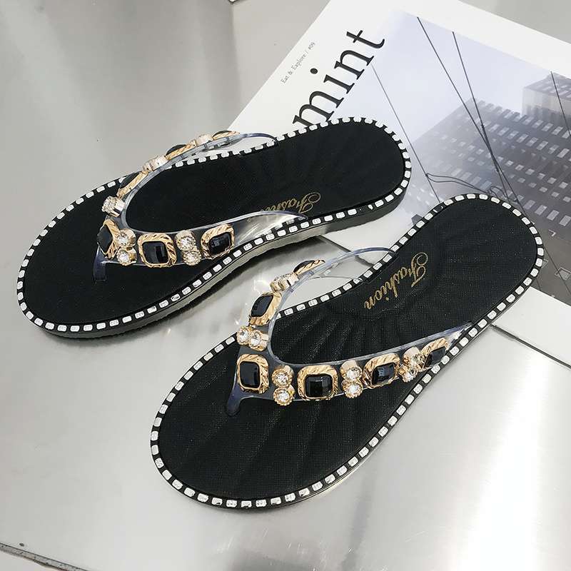 여성용 슬리퍼 2020 가을 새로운 다목적 패션 다이아몬드 엣지 소프트 바닥 헤링본 로마 해변 비치 샌들