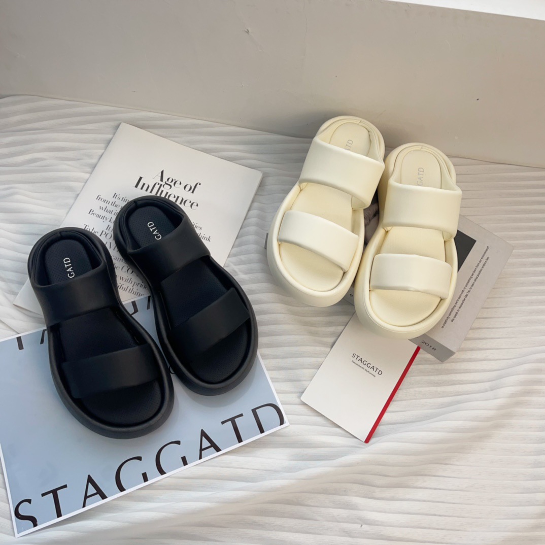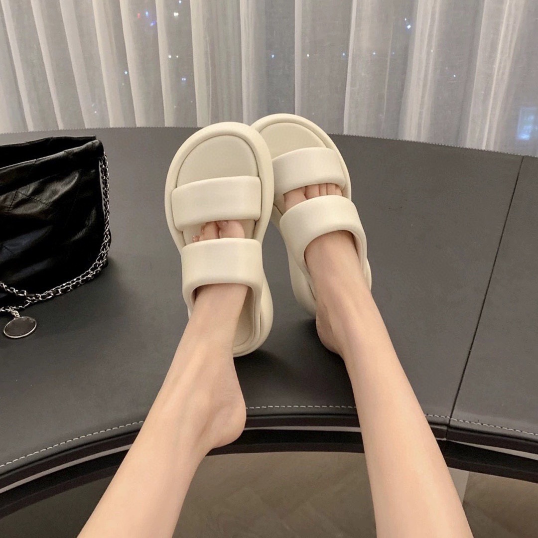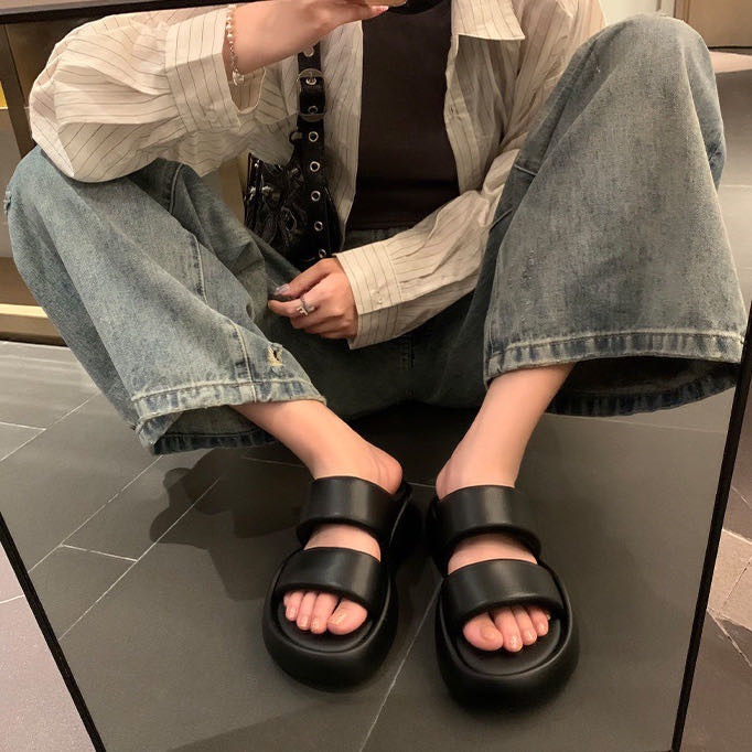 브레드 클라우드 슬리퍼 두꺼운 밑창 더블 스트랩 오픈 토 샌들 여성용 새 여름 다목적 브레드 비치 플랫 슬리퍼