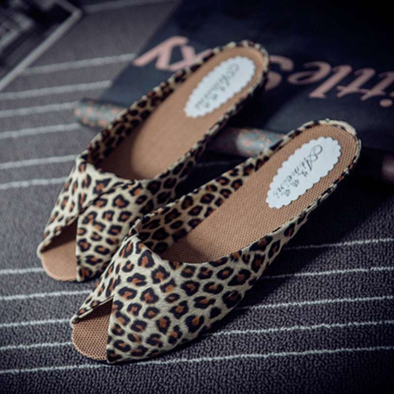 2025년 여름 새로운 패션 게으른 표범 무늬 겉옷 플랫 샌들 물고기 입 반 슬리퍼 뮬 할머니 여성 슬리퍼스토어 가기
