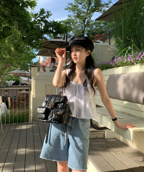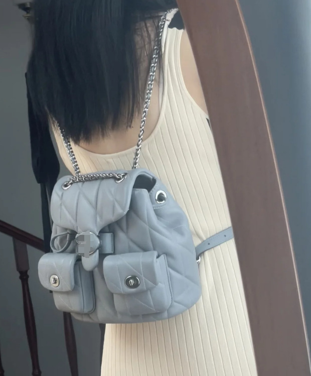 코코스의 새로운 타비 백팩, 스몰 프래그런스 마름모 체인 백팩, 드로스트링 양가죽 패턴 숄더 크로스백