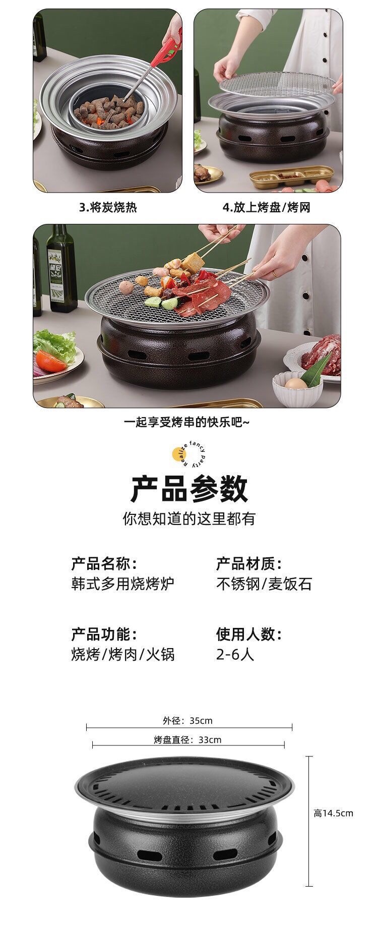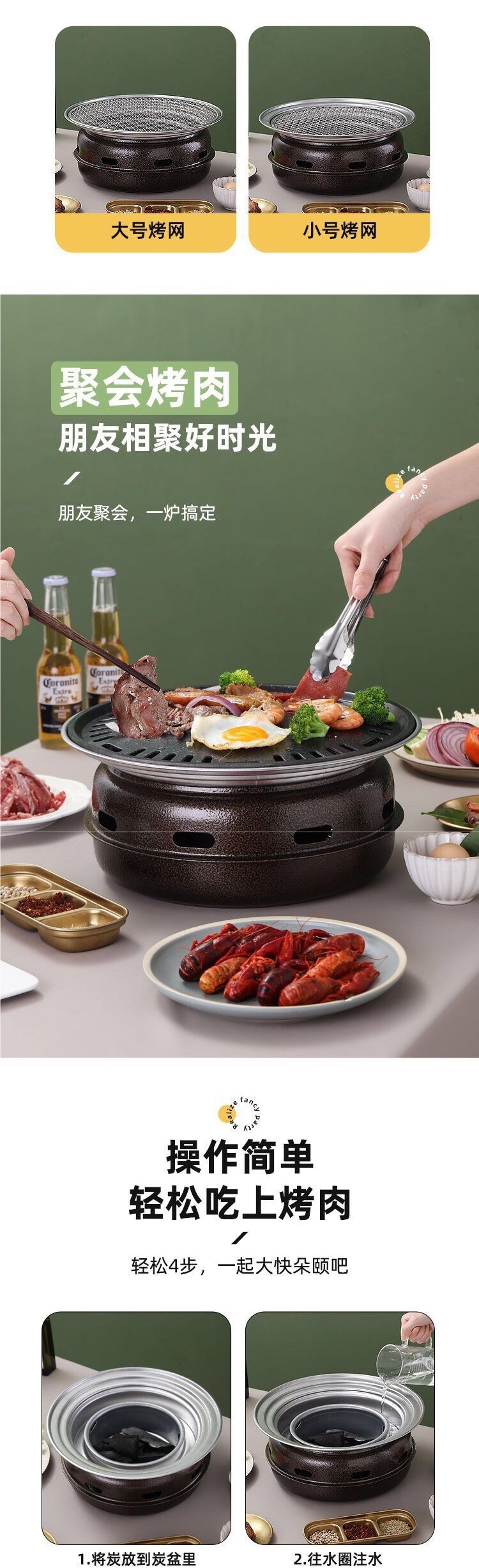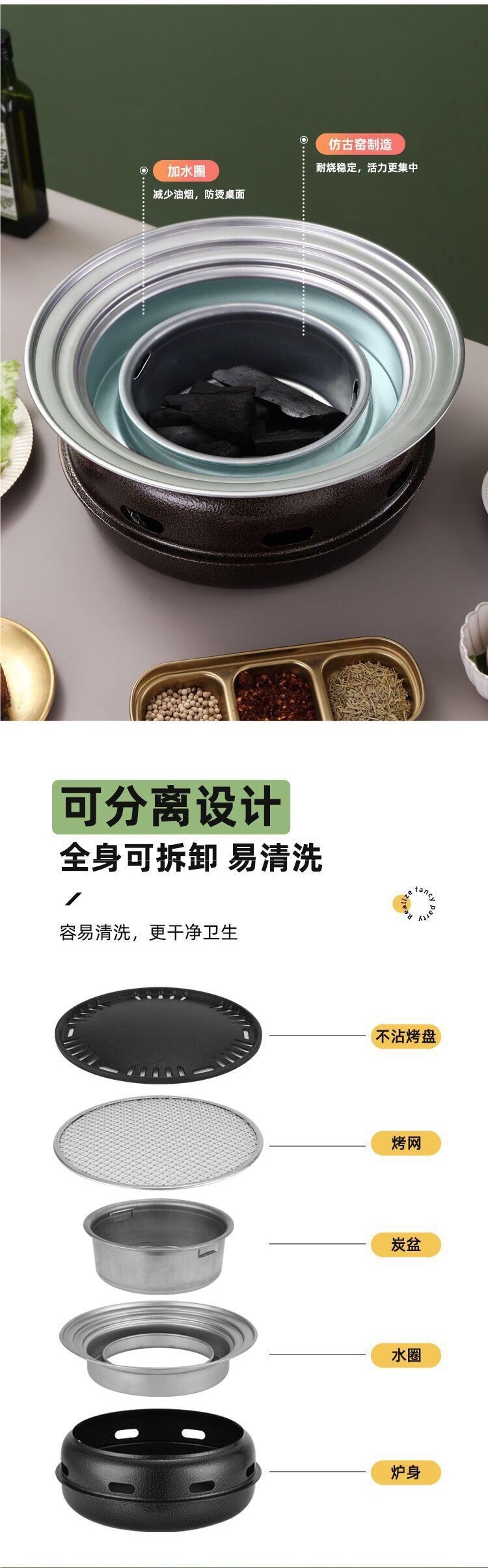 한국식 바베큐 그릴 야외 그릴 가정용 상업용 무연 바베큐 그릴 라운드 바베큐 그릴 피크닉 휴대용 스토브스토어 가기