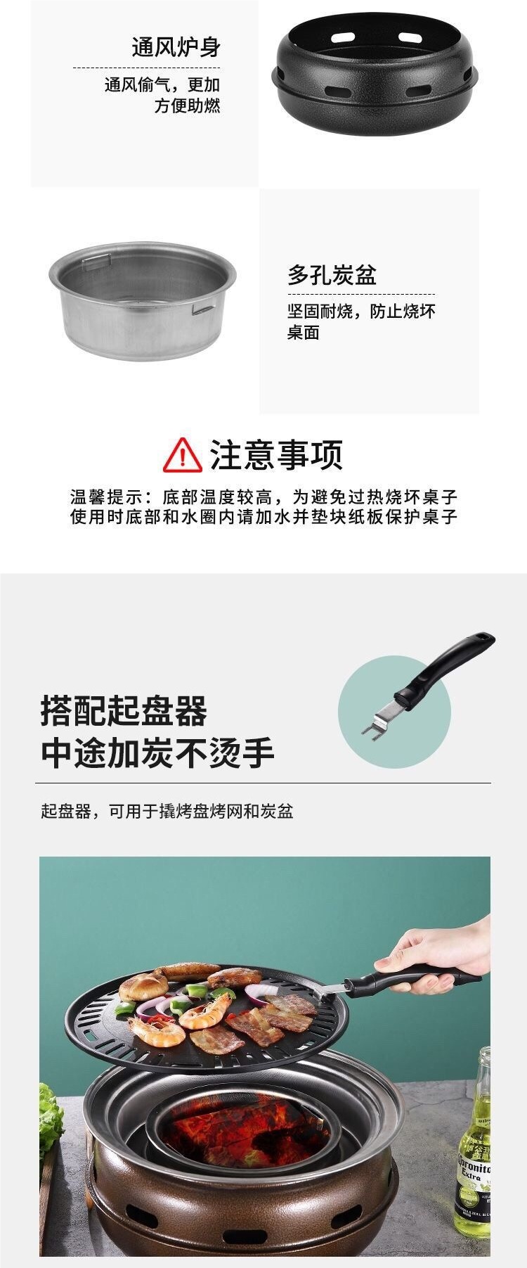 한국식 바베큐 그릴 야외 그릴 가정용 상업용 무연 바베큐 그릴 라운드 바베큐 그릴 피크닉 휴대용 스토브