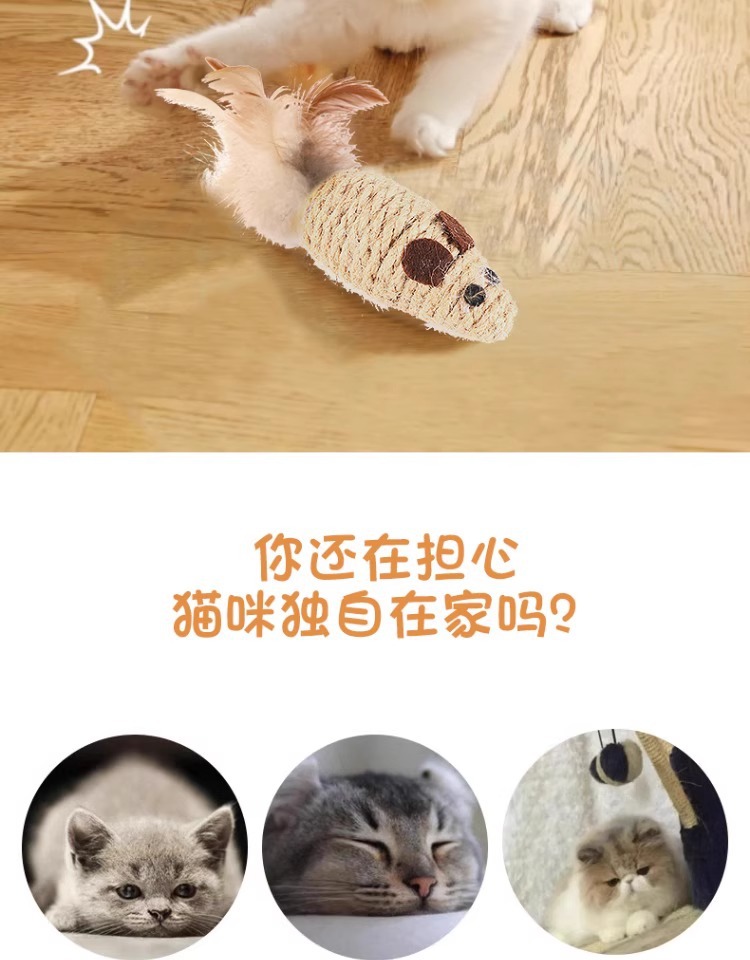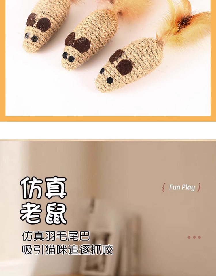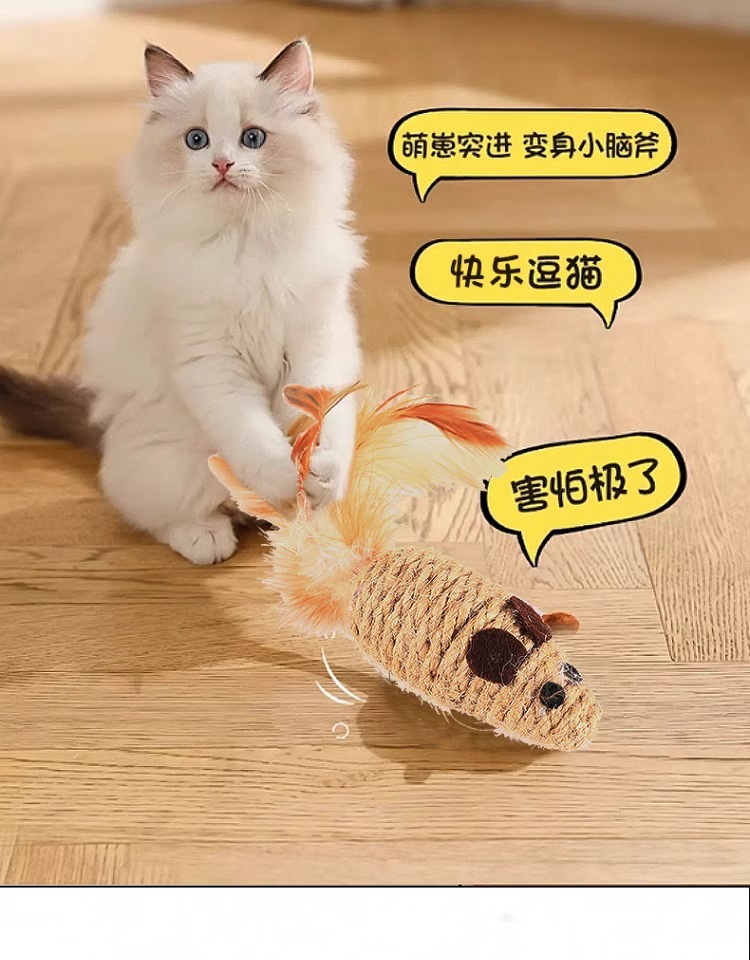 새로운 고양이 장난감 대마 로프 쥐, 떨리는 대마 로프 닭 깃털 쥐, 고양이와 쥐를 위한 재미있는 고양이 장난감스토어 가기