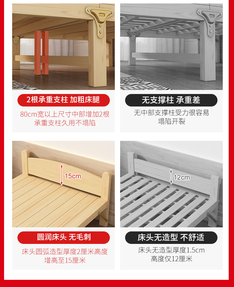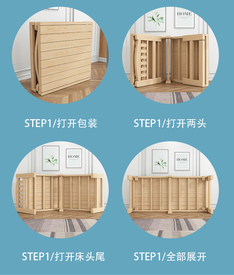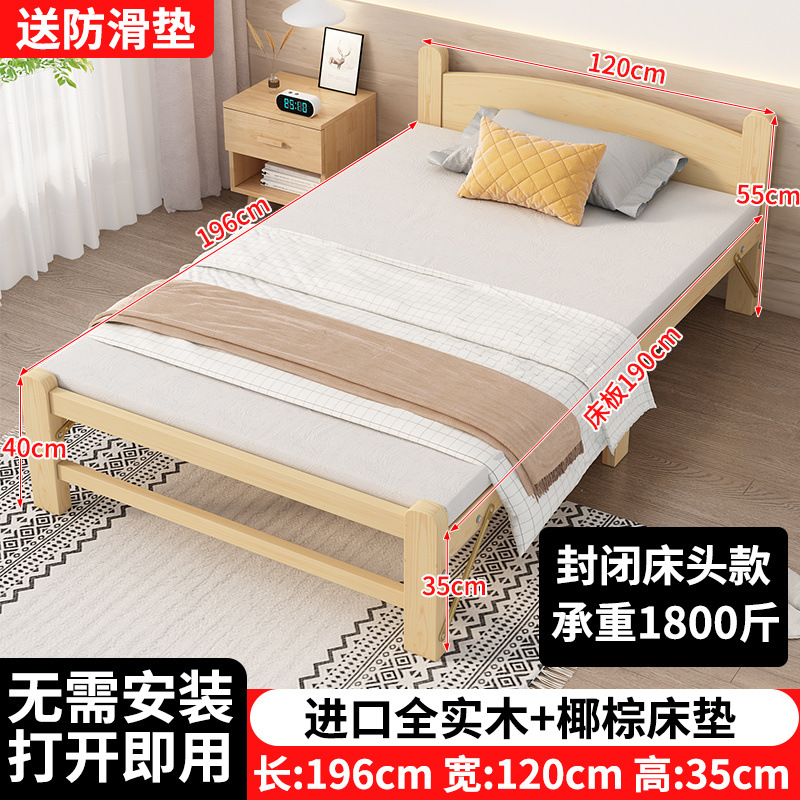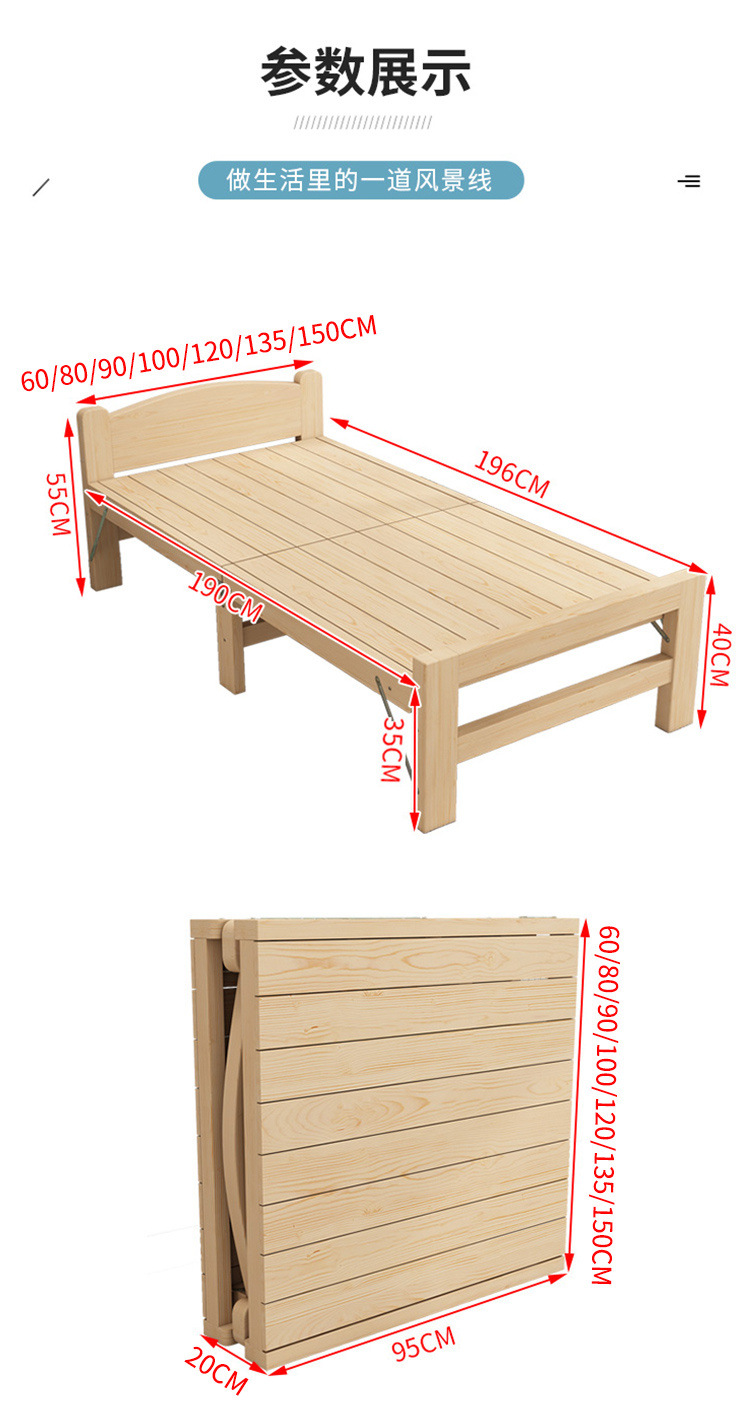 가정용 싱글용 원목 접이식 침대, 임대용 침대, 경제적인 설치가 필요 없는 두꺼운 성인용 낮잠 침대