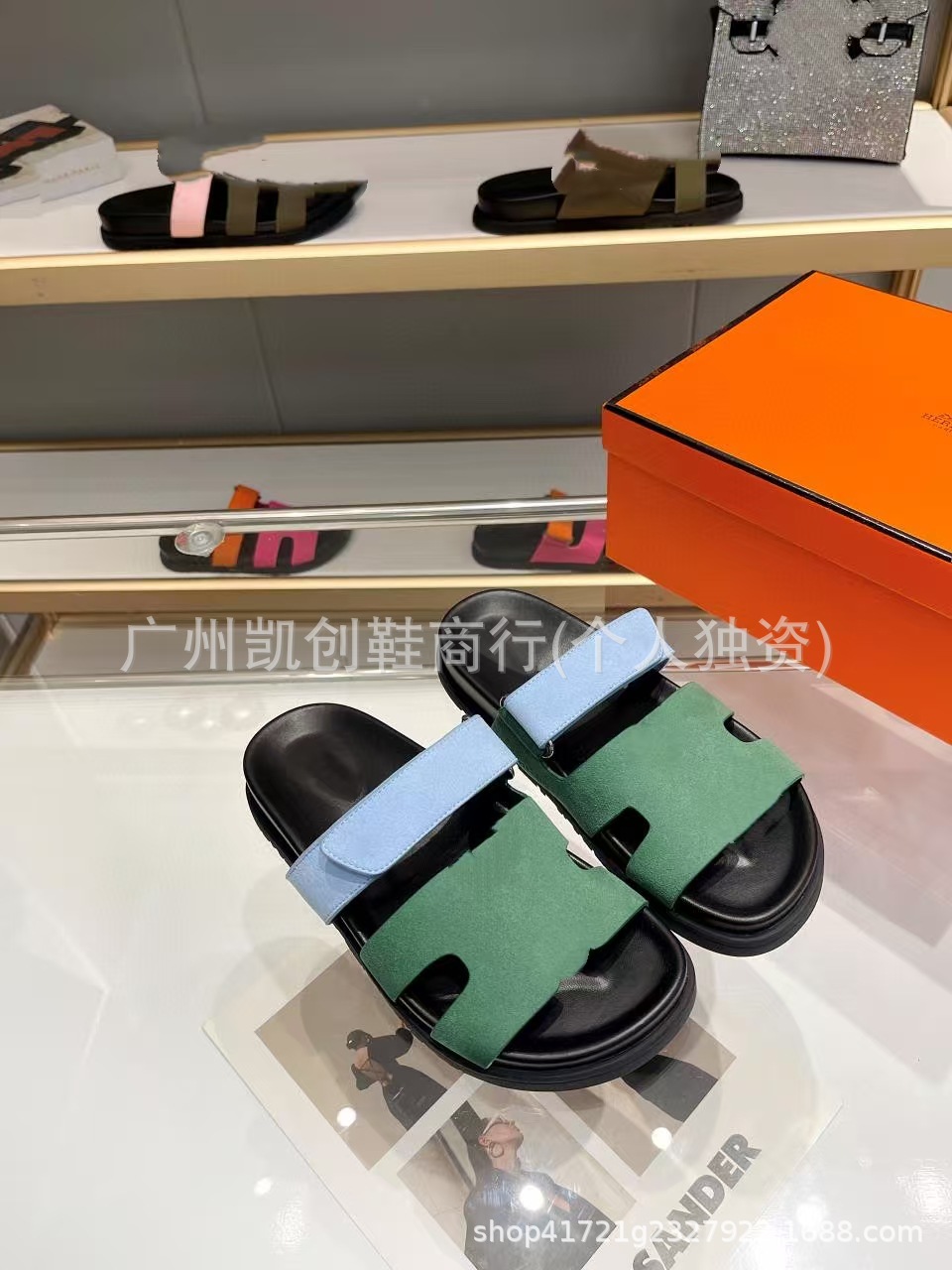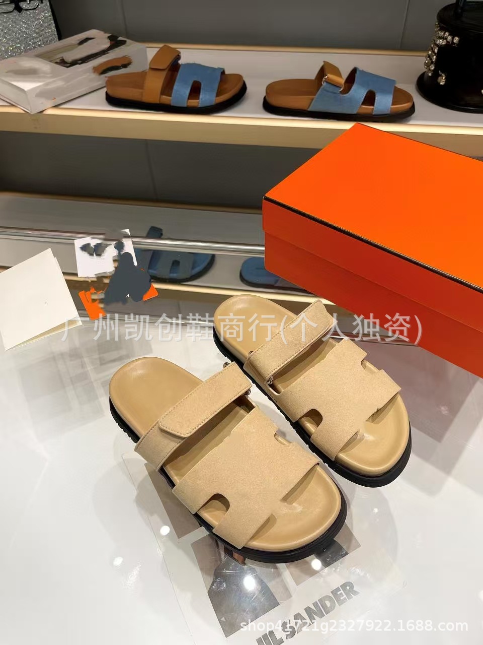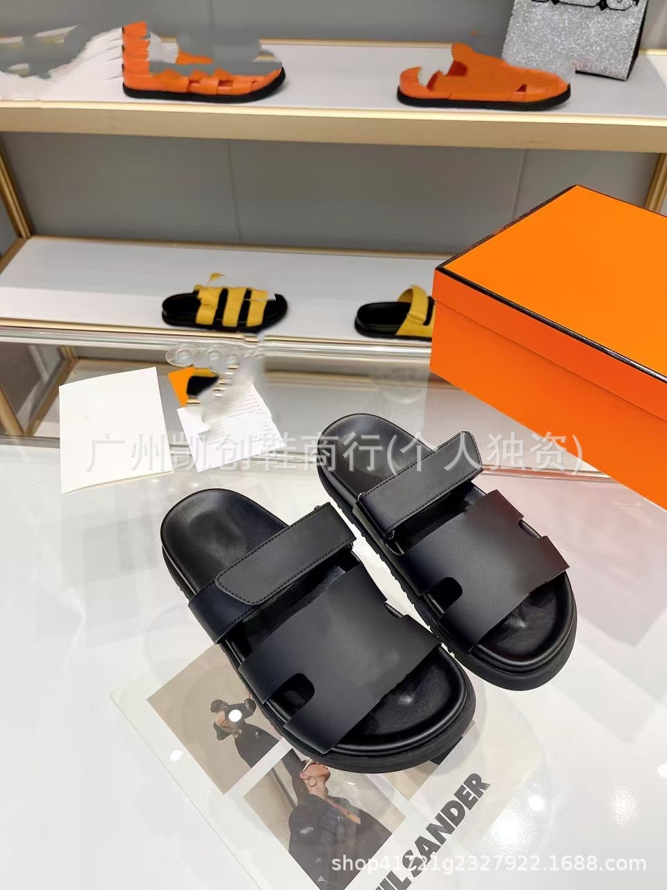 유럽과 미국의 2025년 여름 신상 대외 무역 아줌마 벨크로 대형 슬리퍼 플랫 비치 커플 샌들스토어 가기