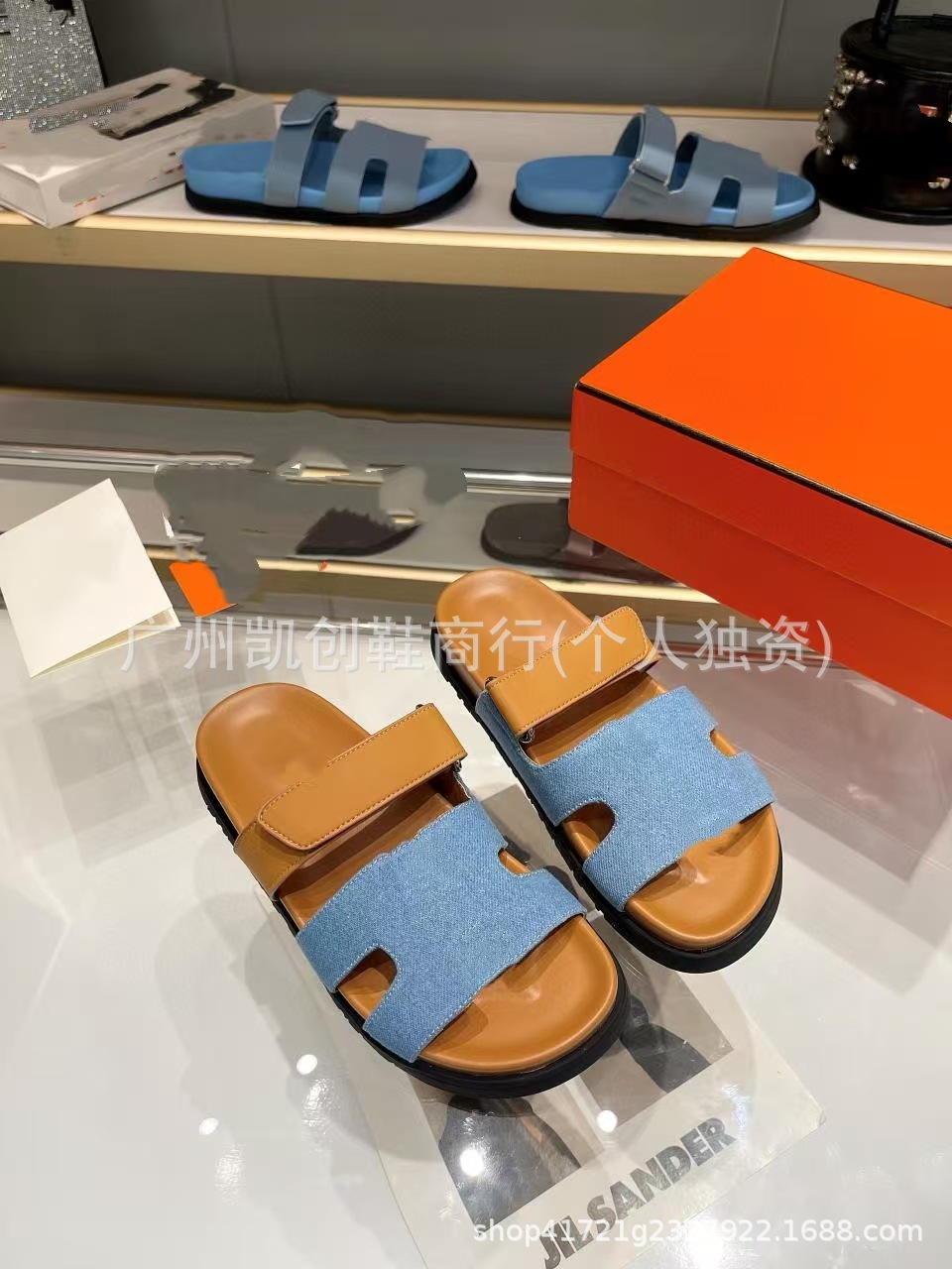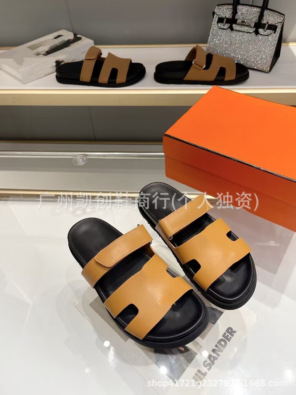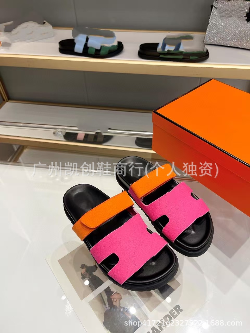 유럽과 미국의 2025년 여름 신상 대외 무역 아줌마 벨크로 대형 슬리퍼 플랫 비치 커플 샌들스토어 가기