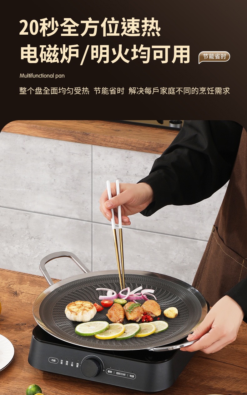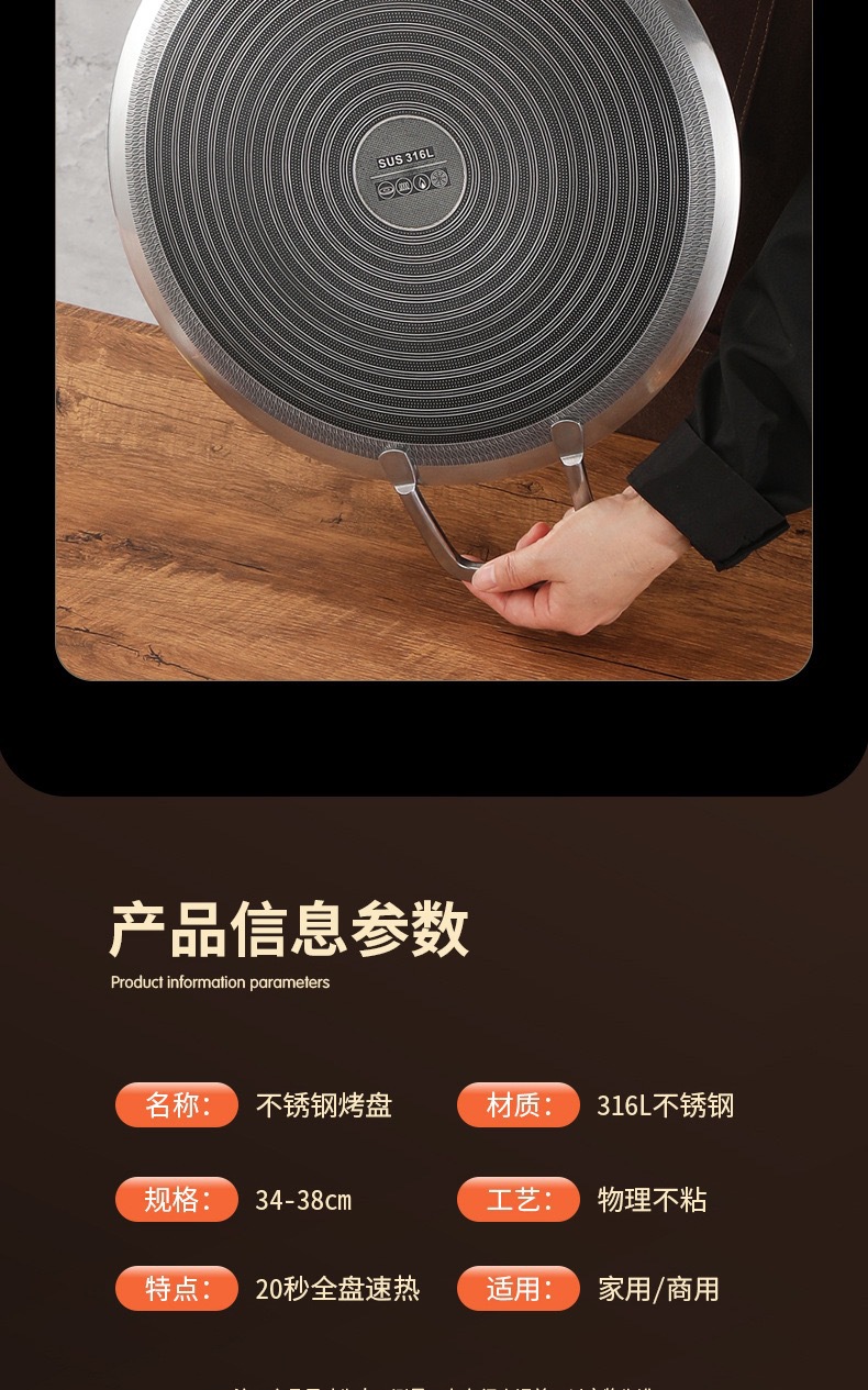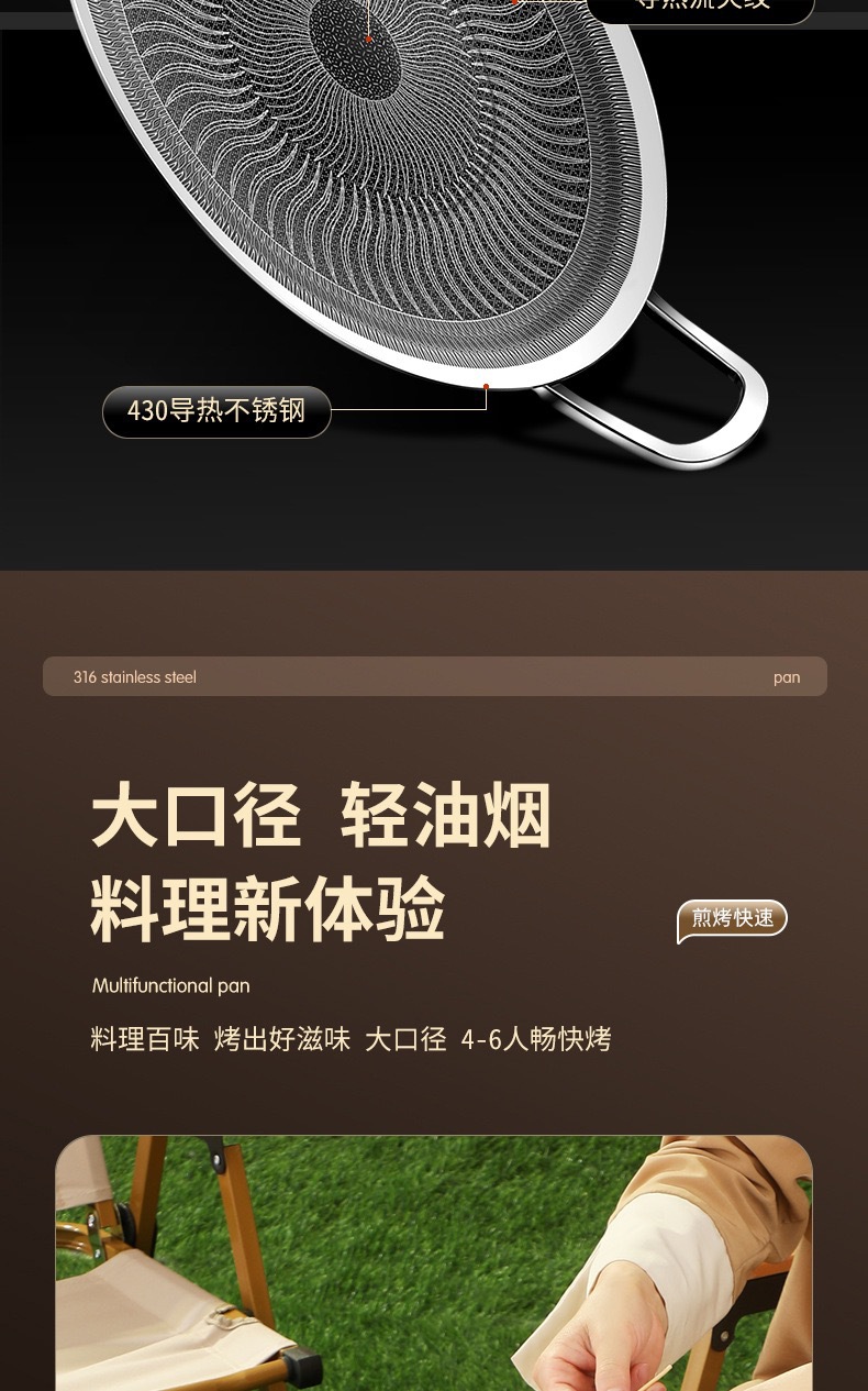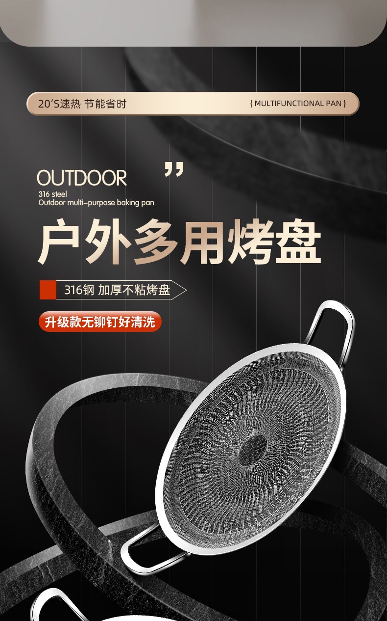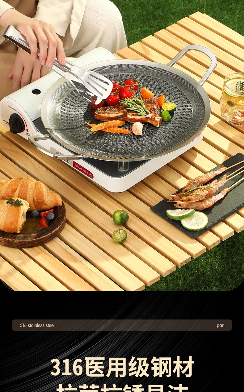두꺼운 316 스테인레스 스틸 바베큐 팬, 붙지 않는 팬, 야외 프라이팬, 무연, 붙지 않는 캐세트 스토브, 유니버설 인덕션 쿠커