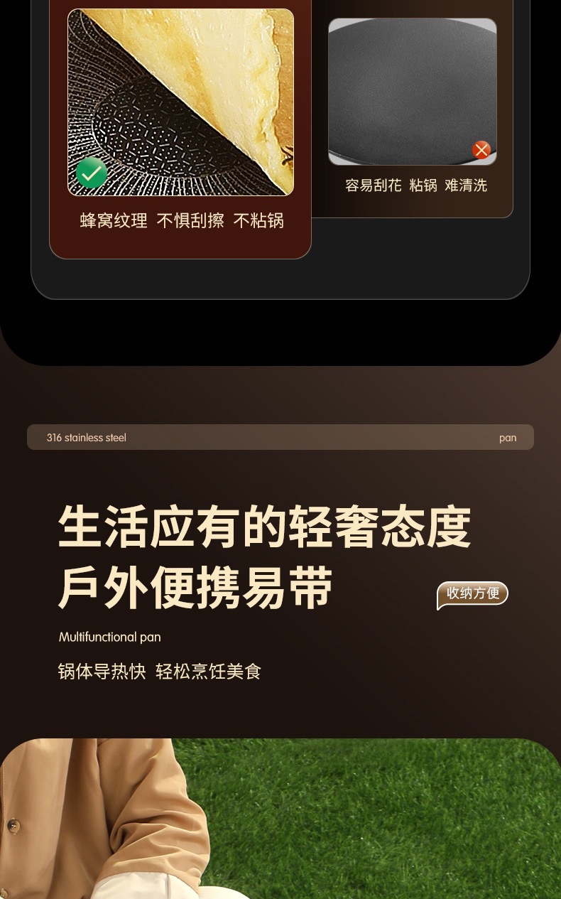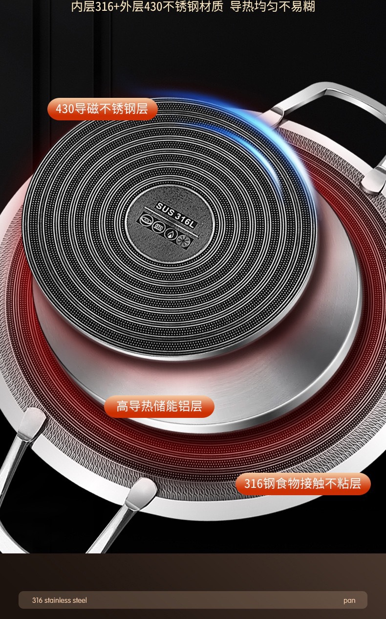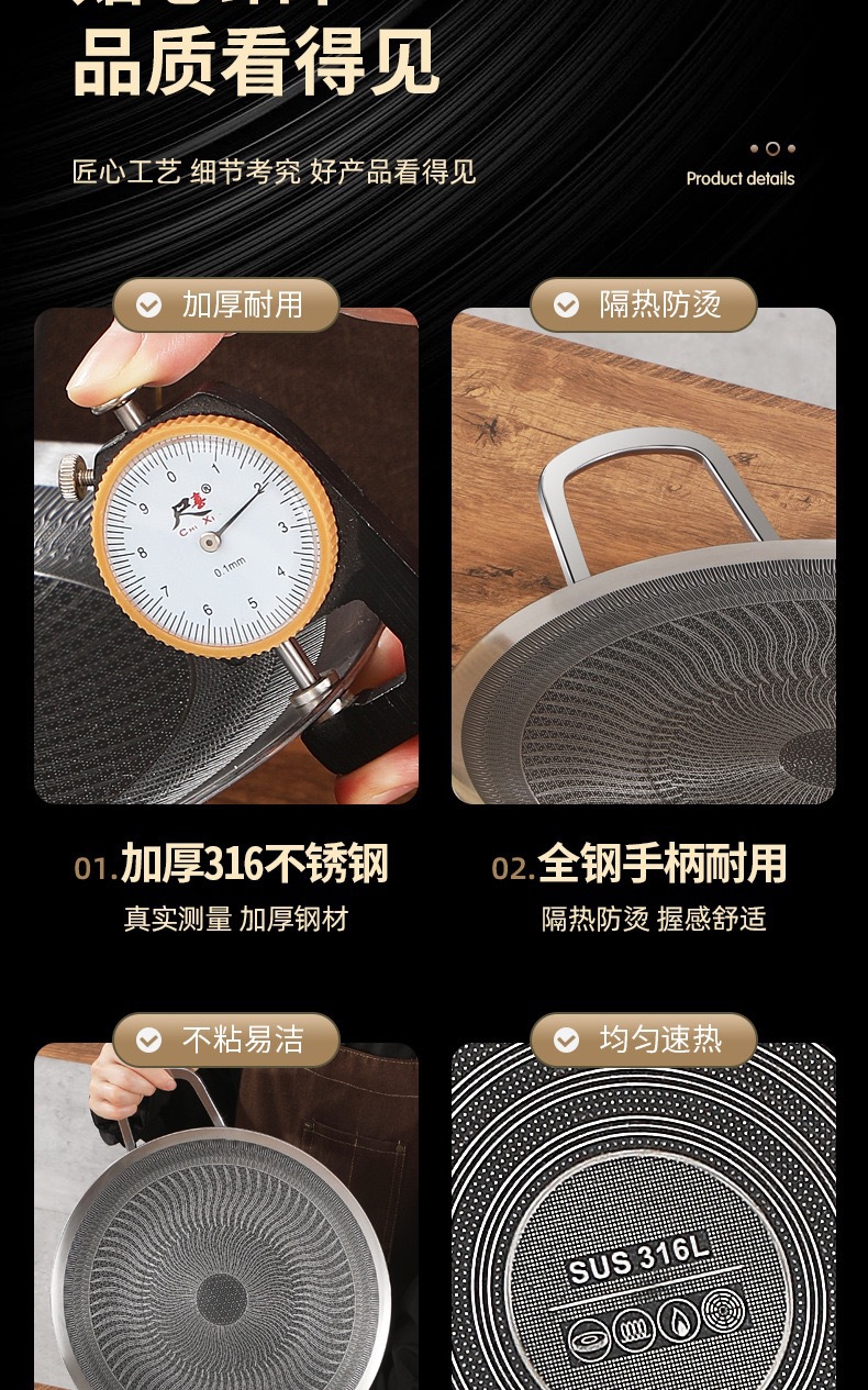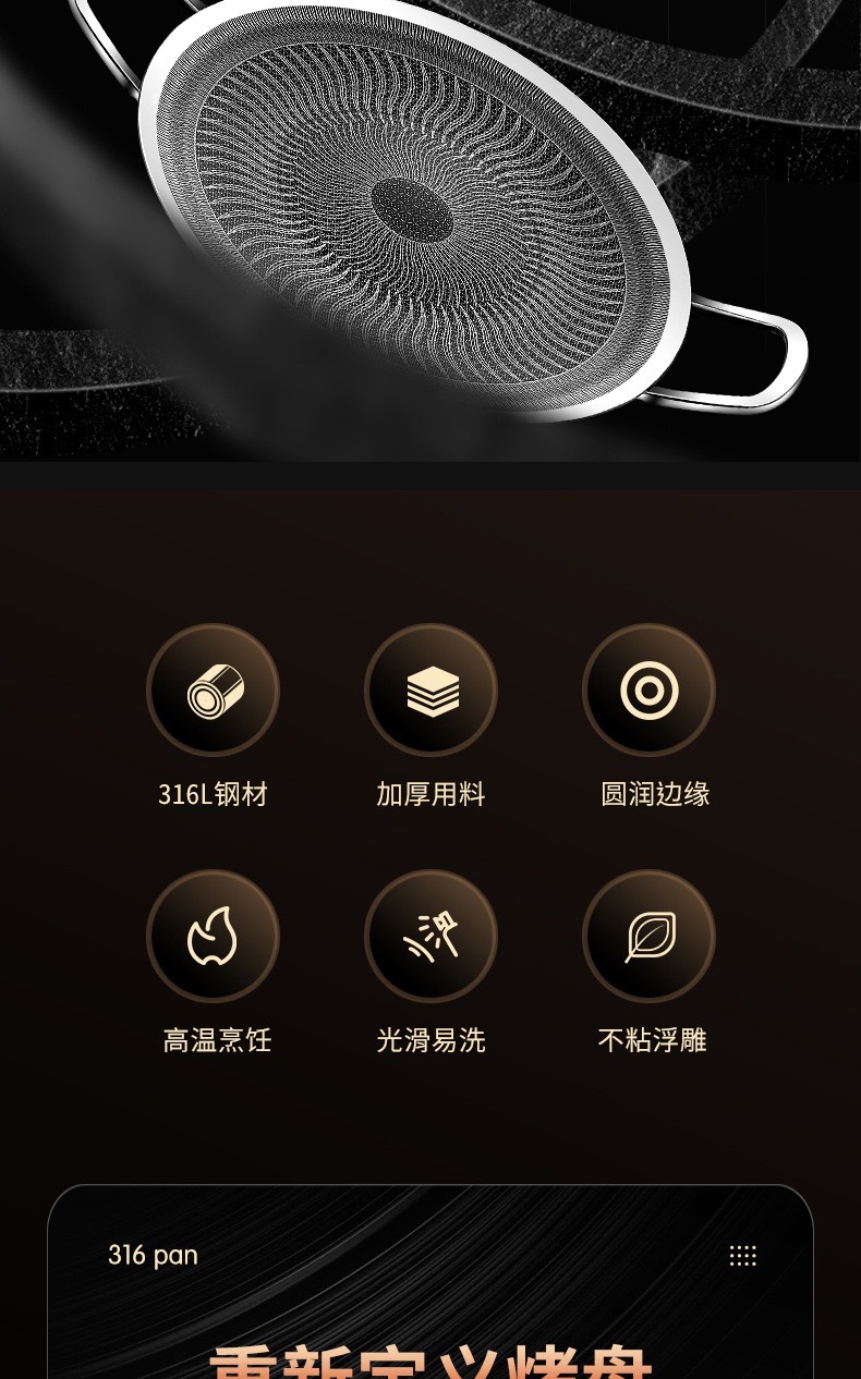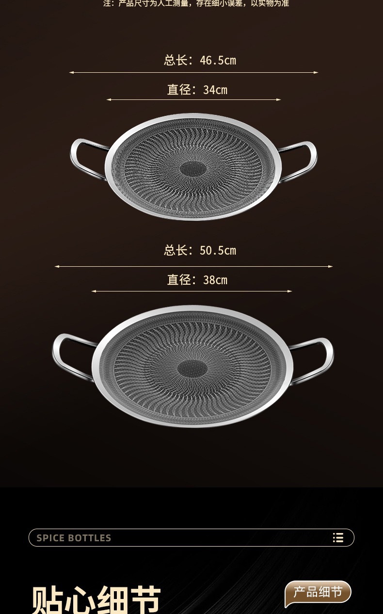 두꺼운 316 스테인레스 스틸 바베큐 팬, 붙지 않는 팬, 야외 프라이팬, 무연, 붙지 않는 캐세트 스토브, 유니버설 인덕션 쿠커