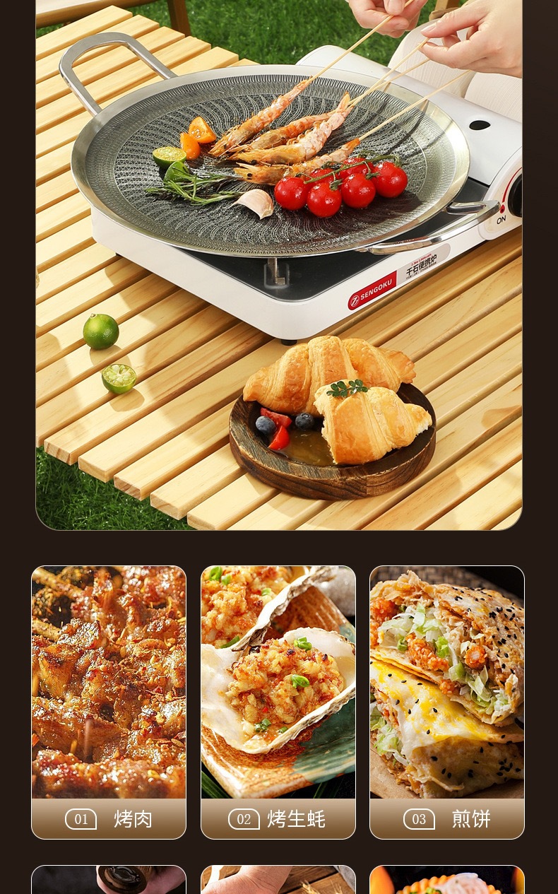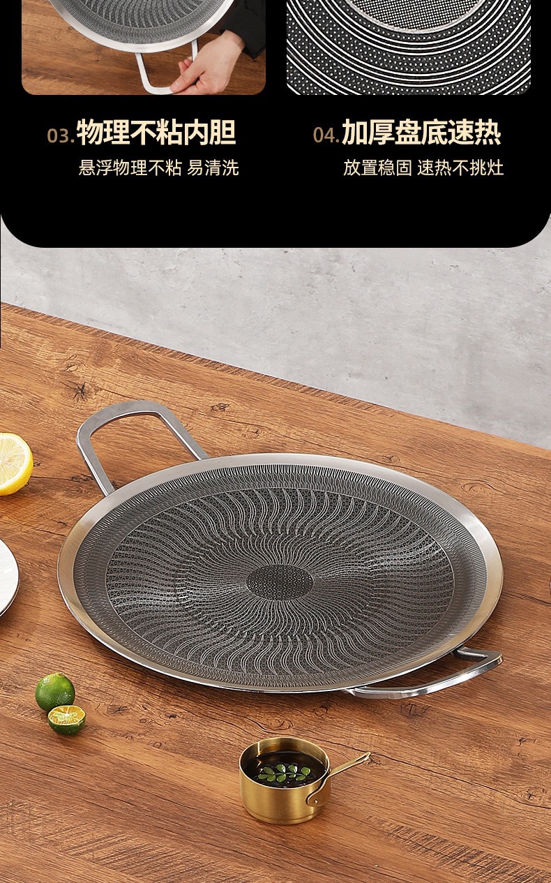 두꺼운 316 스테인레스 스틸 바베큐 팬, 붙지 않는 팬, 야외 프라이팬, 무연, 붙지 않는 캐세트 스토브, 유니버설 인덕션 쿠커스토어 가기