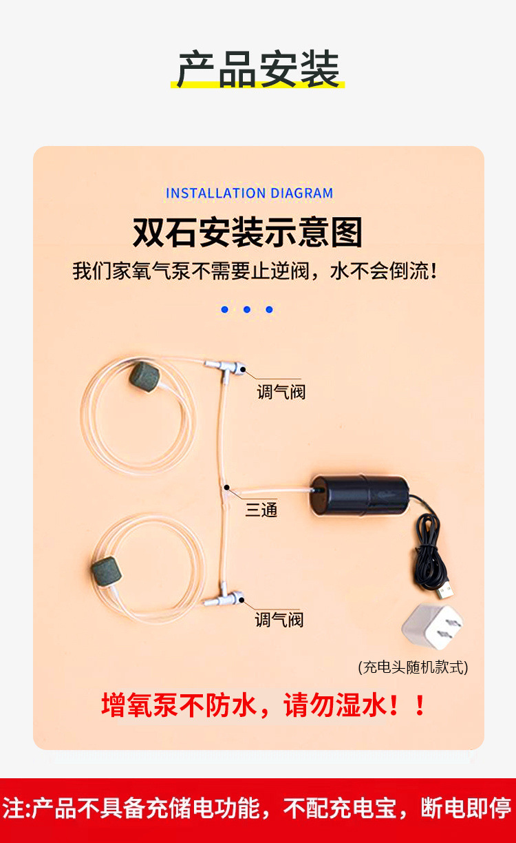 • [작은 풍량 + 조절 가능한 풍량] 이중 튜브 이중 에어 스톤 + 플러그