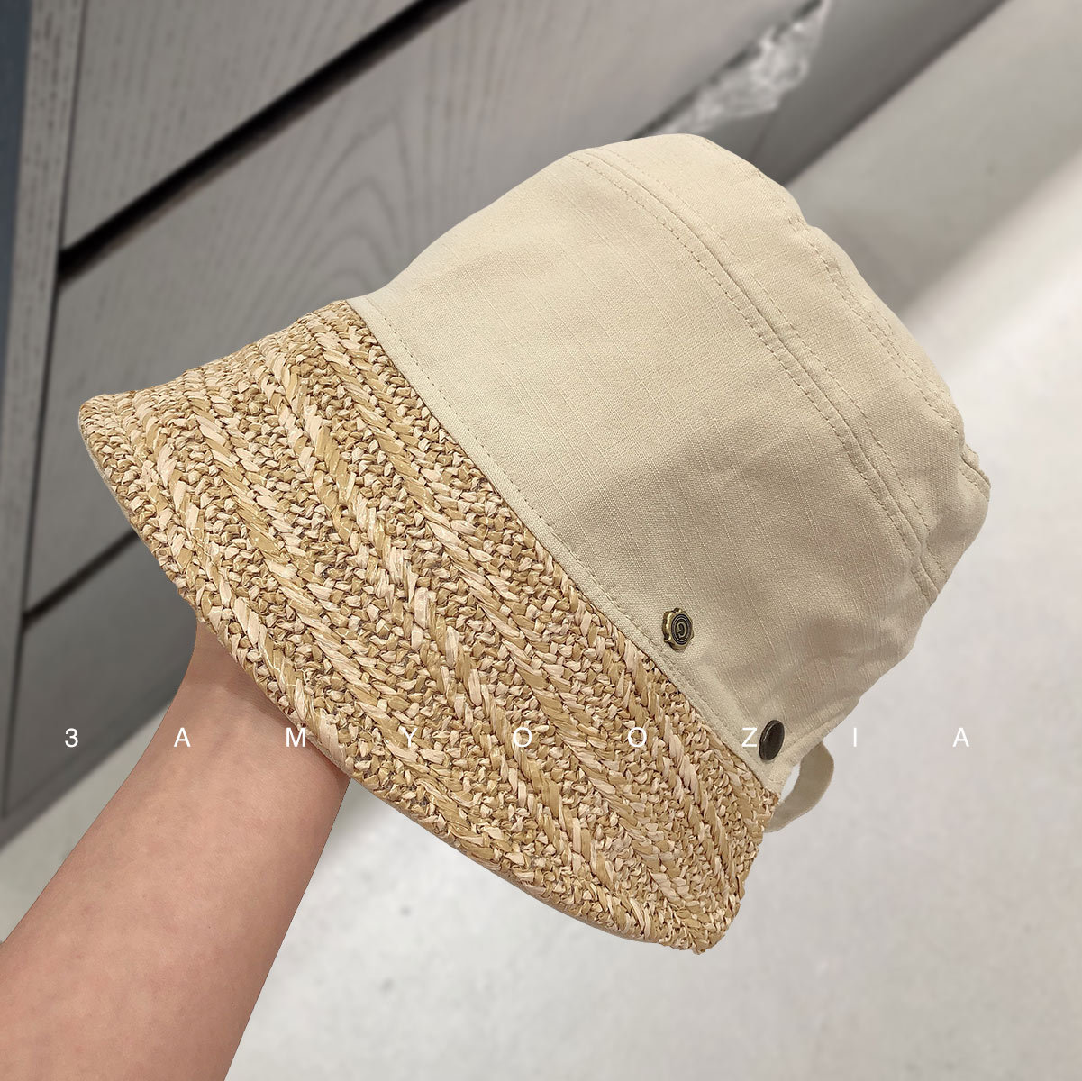 小众设计夏季新款遮阳拼接纯色草编帽子韩系文艺风显脸小渔夫帽
