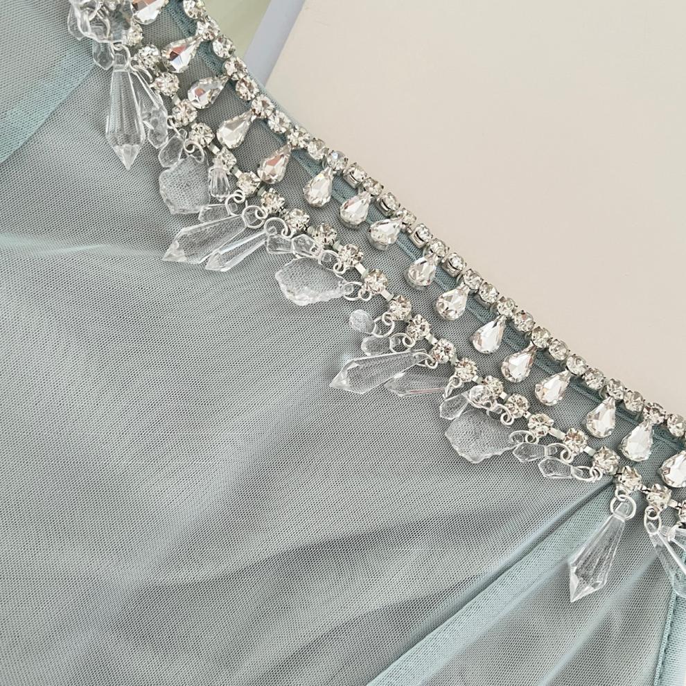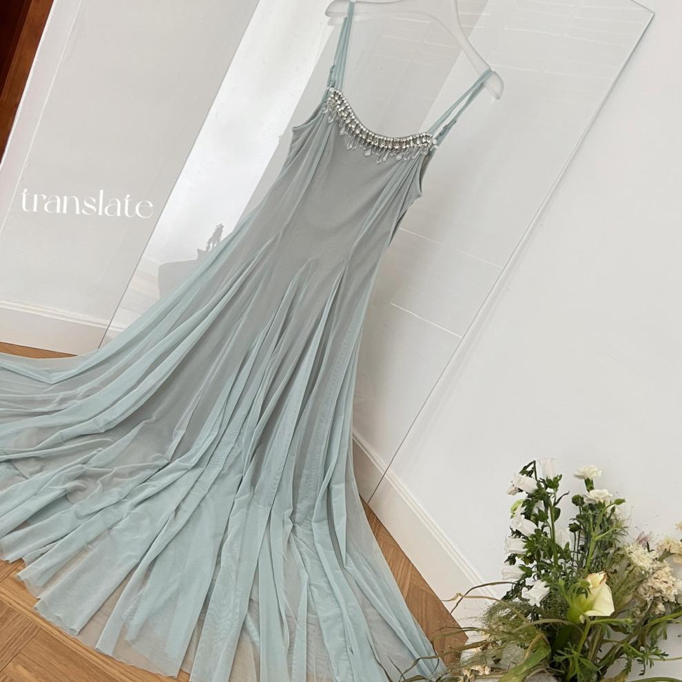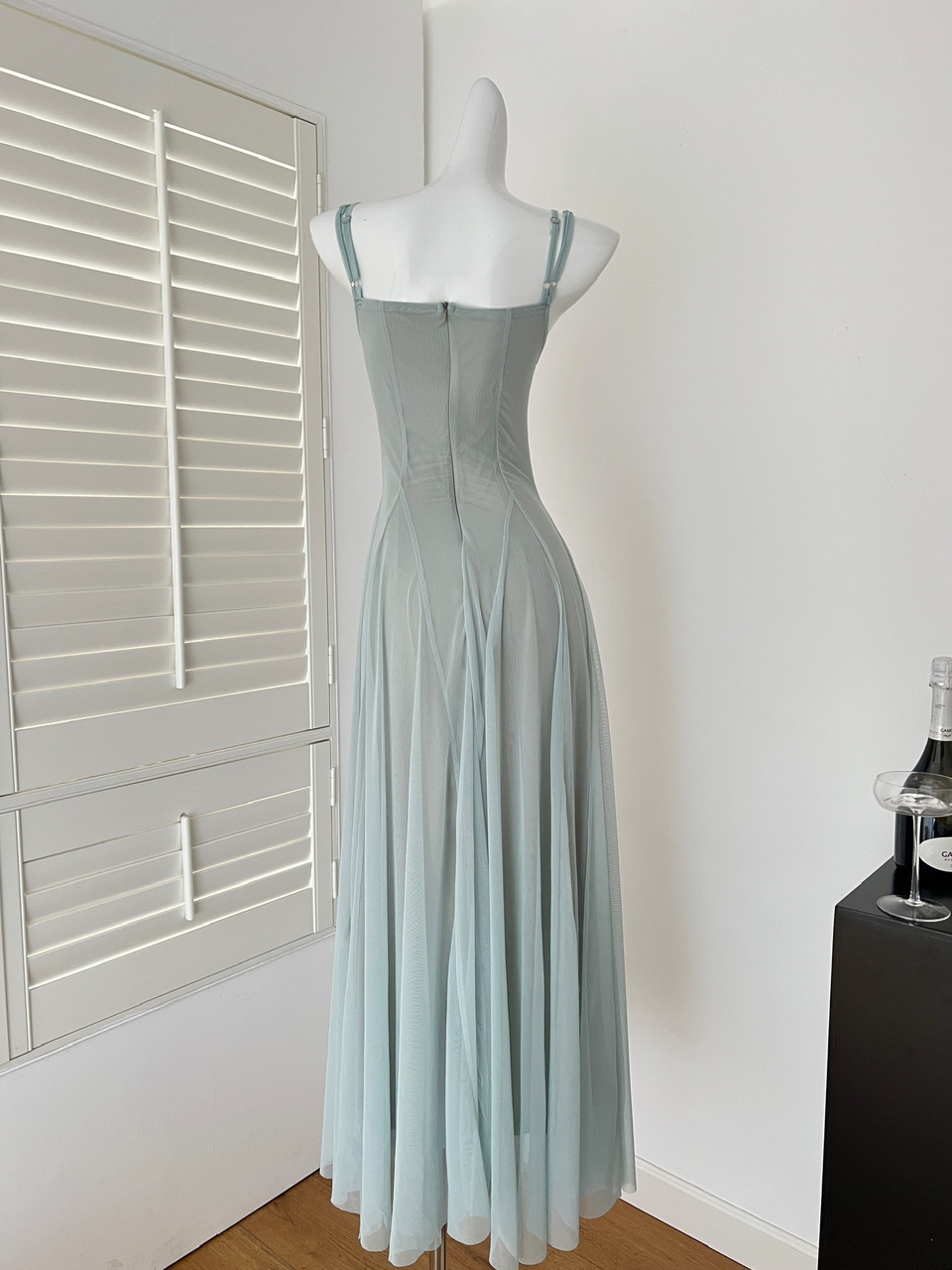 여름 슬림핏 크리스탈 체인 망사 롱 드레스 패셔너블한 스타일 2025 신상