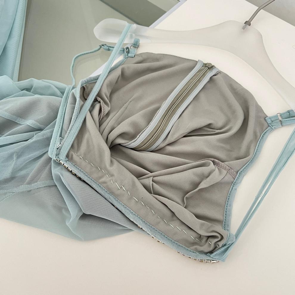여름 슬림핏 크리스탈 체인 망사 롱 드레스 패셔너블한 스타일 2025 신상스토어 가기