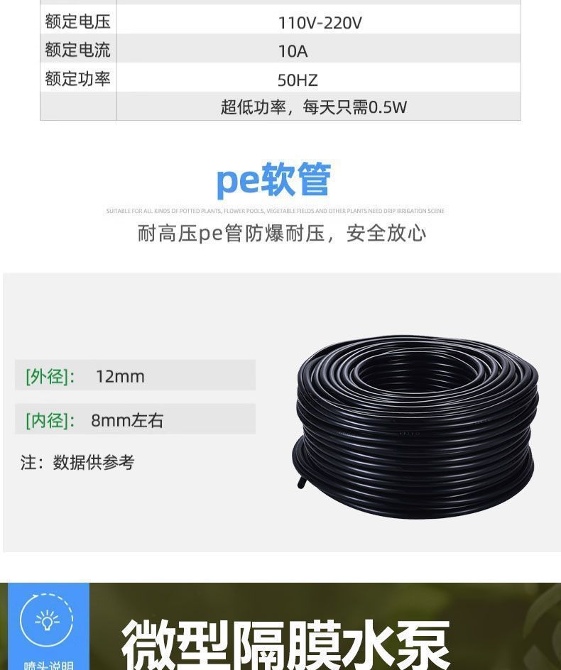 • 60W 펌프 + 10m 범용 노즐 + 타이머