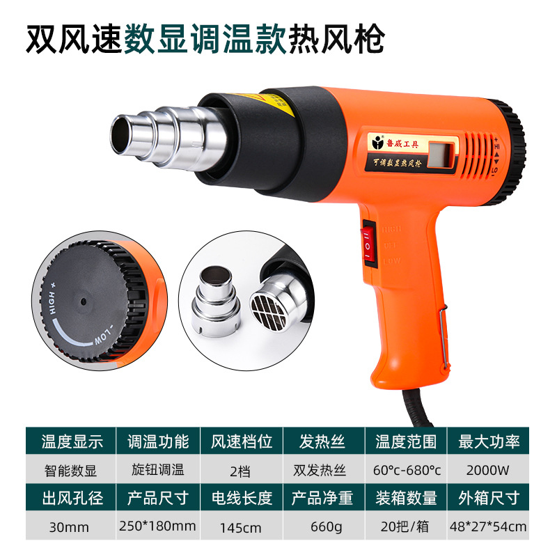 Luwai Tools 디지털 디스플레이 뜨거운 공기 총 무단계 온도 조절 자동차 필름 베이킹 건 열 수축 필름 고출력 용접 총